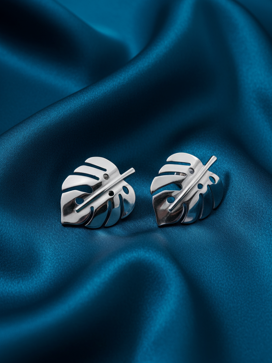 Серьги пусеты Лист Монстера