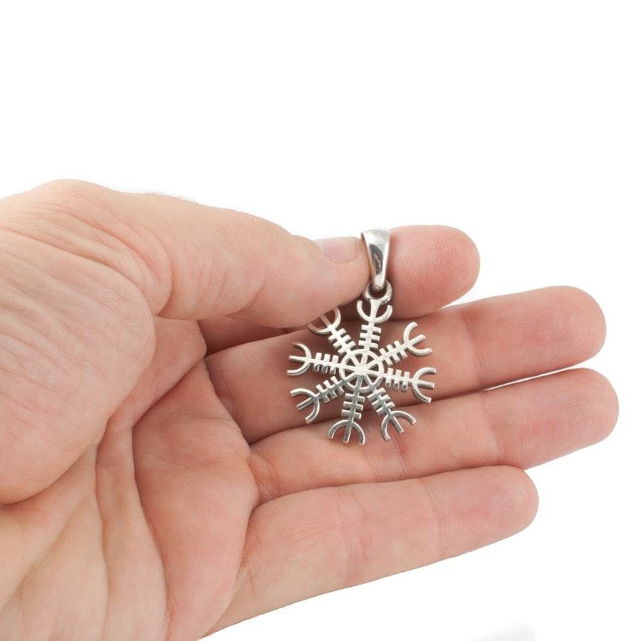 Друзья, представляем Вам классический из существующих Агисхьяльмов, изготовлен по технологии выплавляемых моделей из стерлингового серебра 925 пробы. Назван Агисхьяльм Фафнира, в честь великой саги - борьбы. В далеком прошлом жил смелый и сильный воин по имени Сигурд. Ему не страшны были бои, и он никогда не испытывал страх перед врагами. Этому отважному воину удалось даже победить всесильного дракона по имени Фафнир. Сигурд после победы завладел его драгоценностями. Среди которых и был найден этот амулет Агисхьяльм.