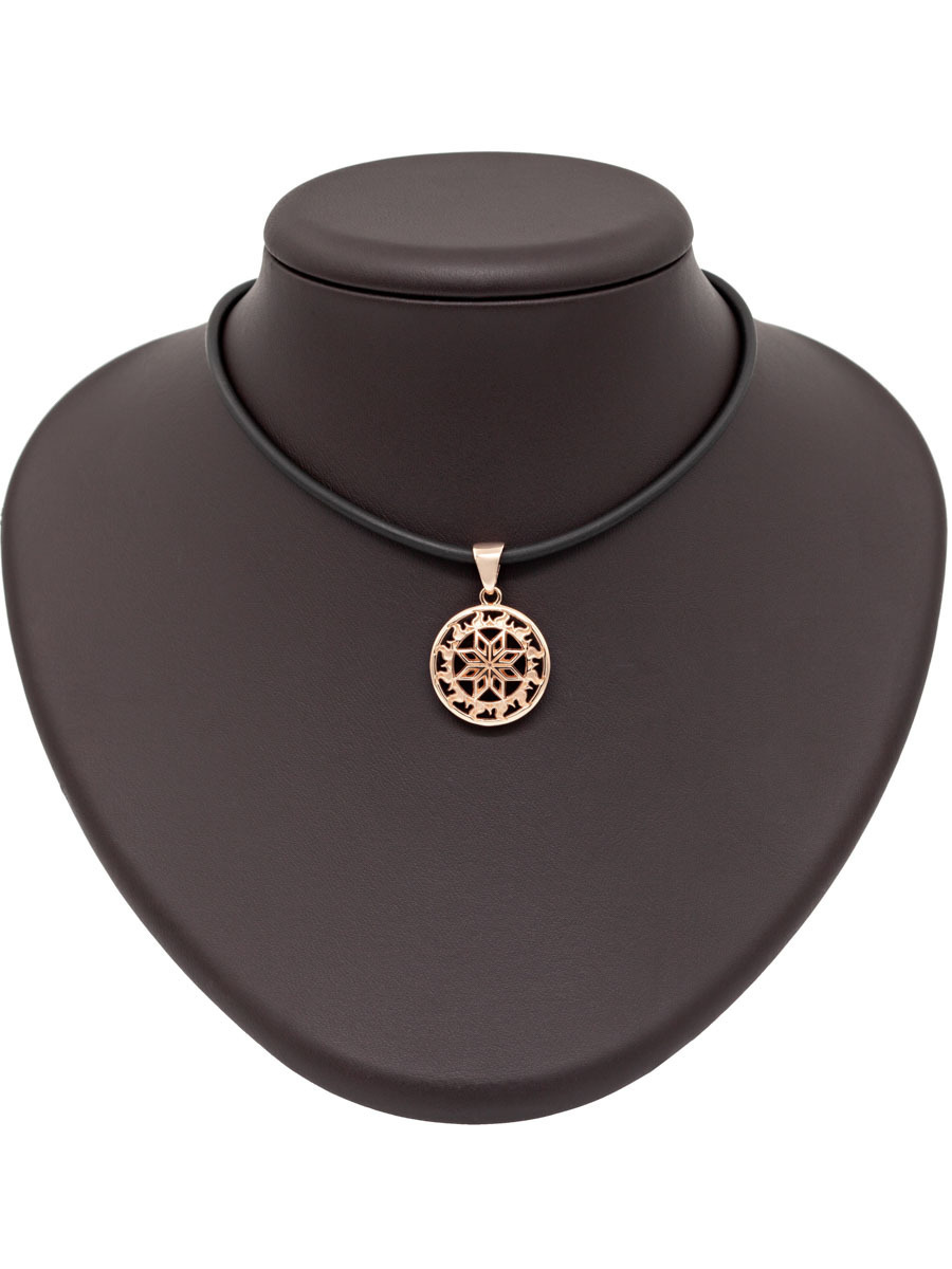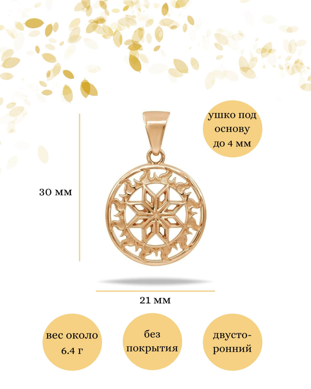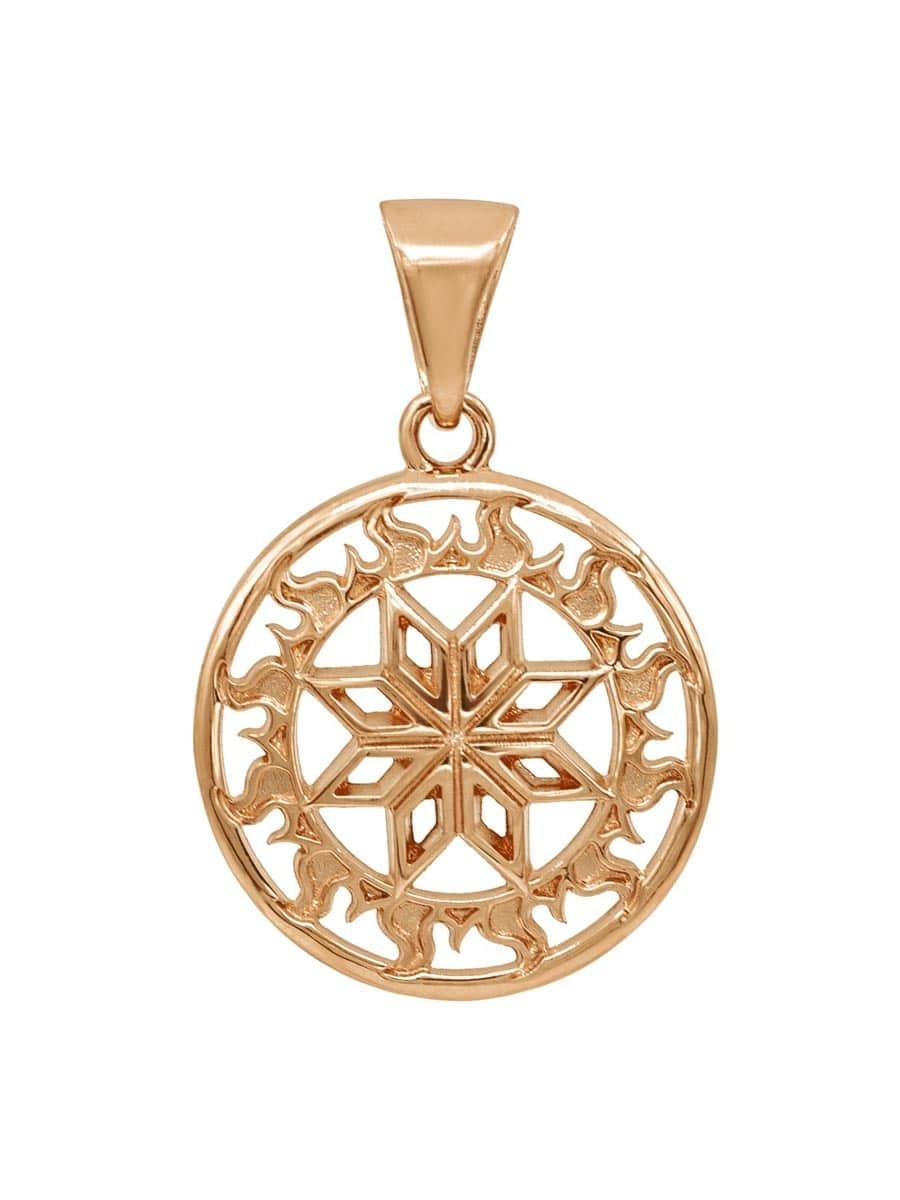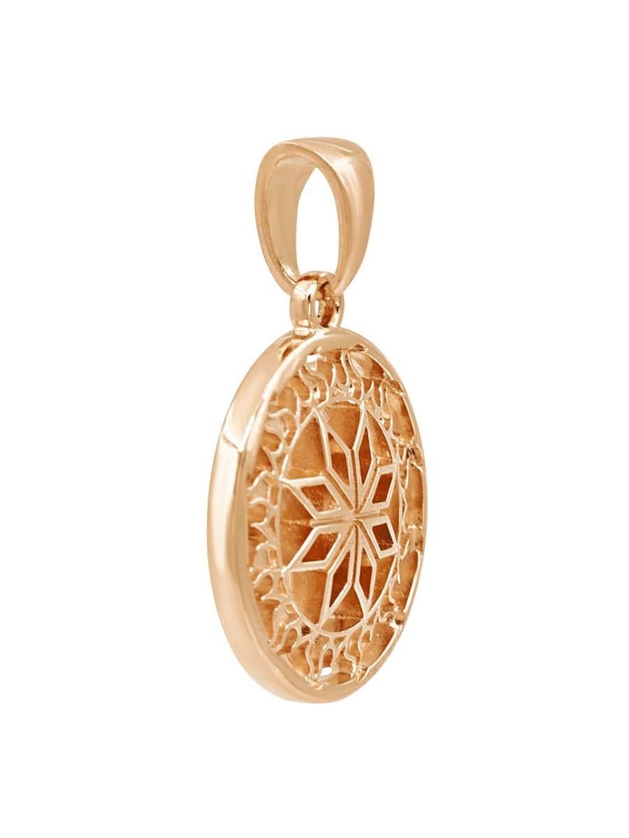 Алатырь в солнце, сделанный из золота 585 пробы (красного цвета), потрясает филигранной ручной работой ювелиров, в точности воссоздавших древний символ благополучия, процветания, везения и счастья.