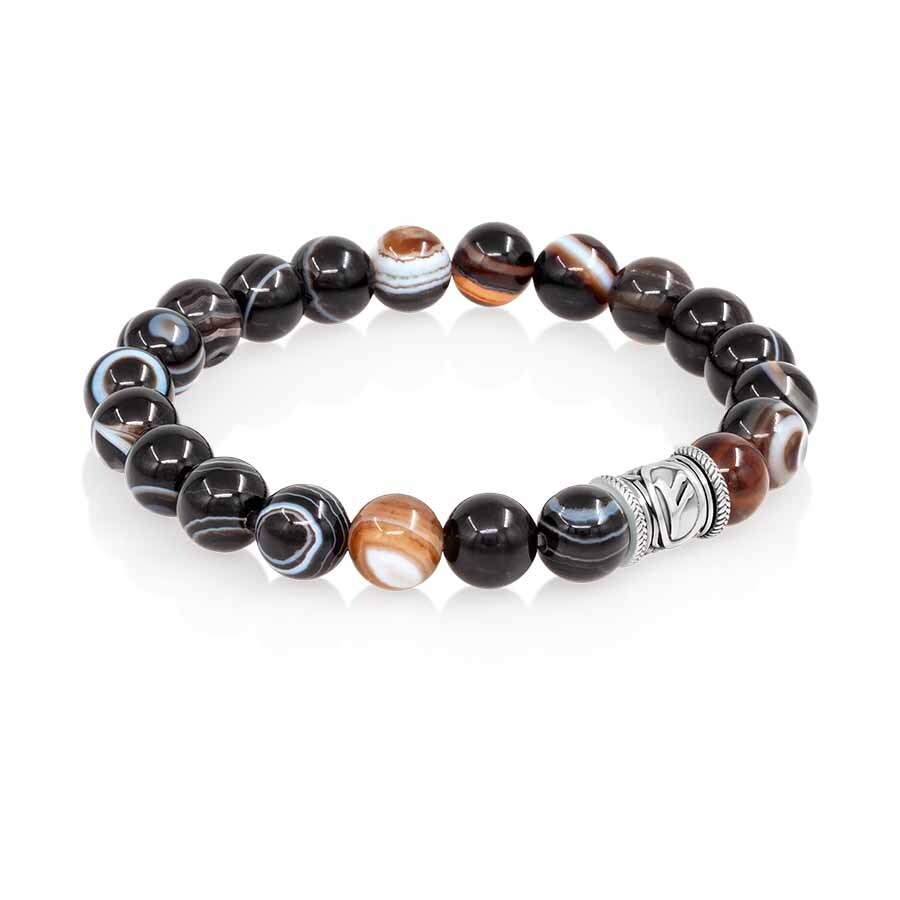 Браслет Денежный импульс из натурального агата глазкового с руной Феху из мельхиора