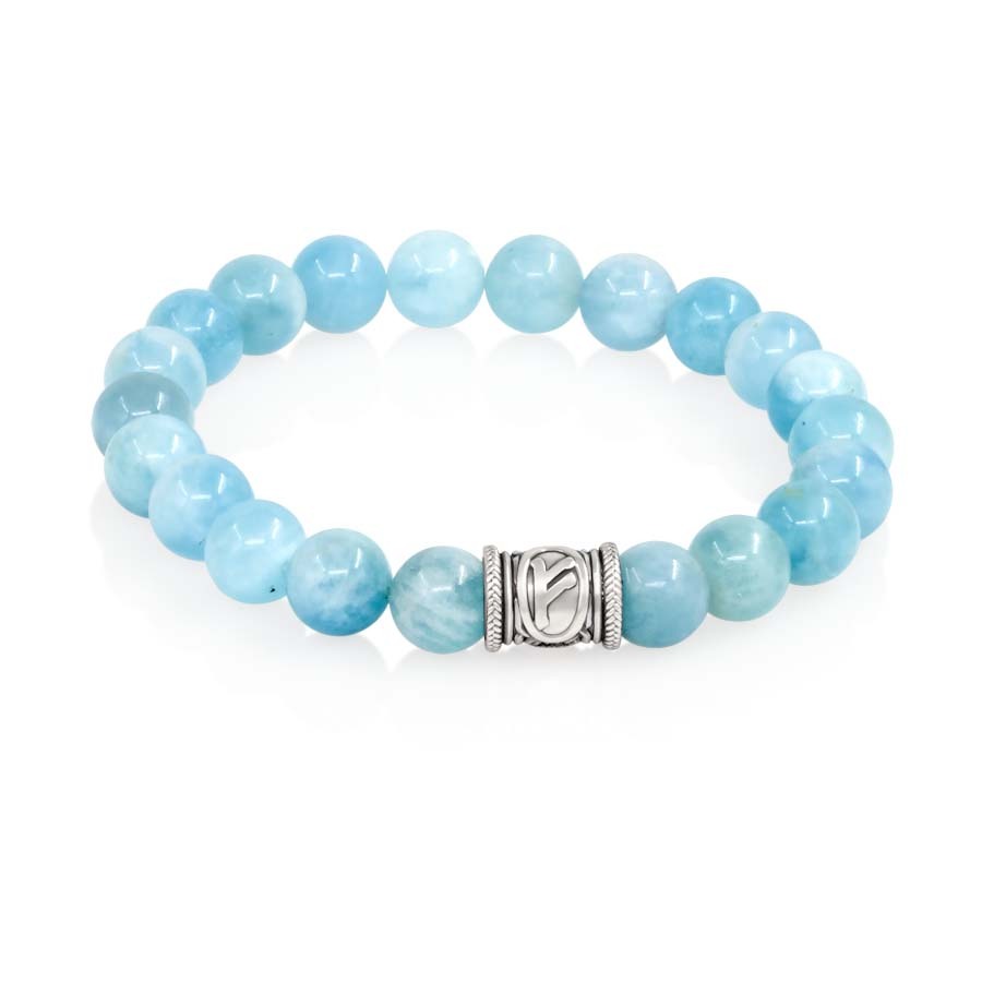 Браслет Денежный импульс из натурального аквамарина с руной Феху из мельхиора