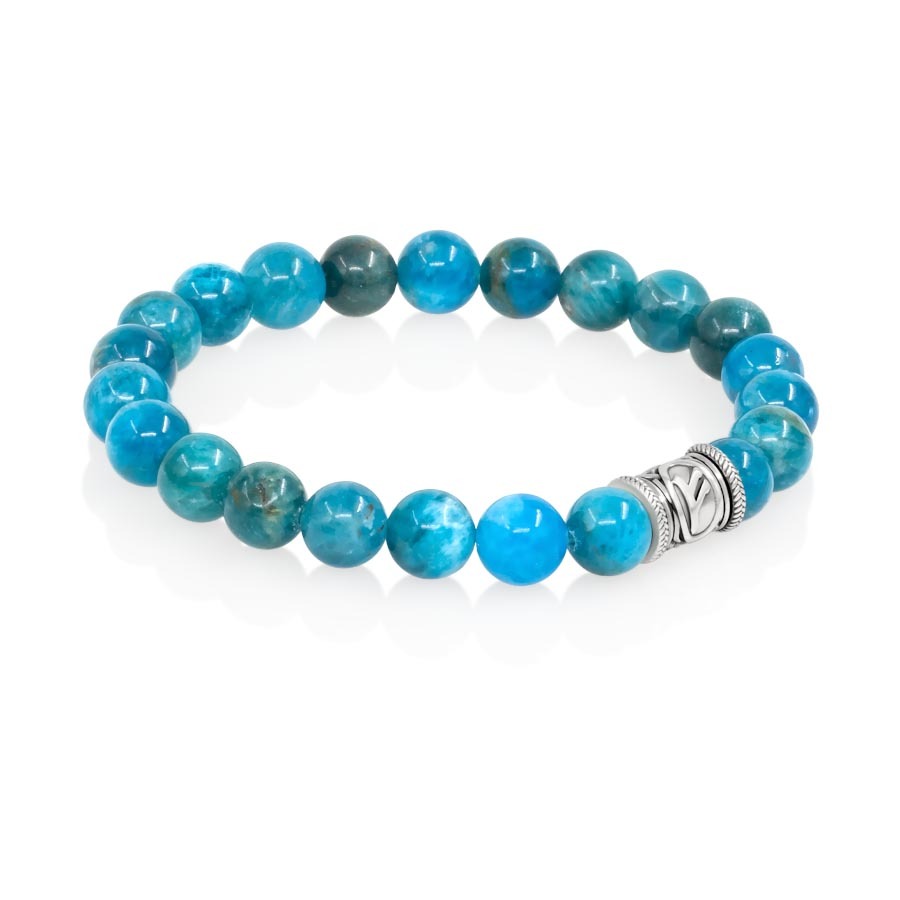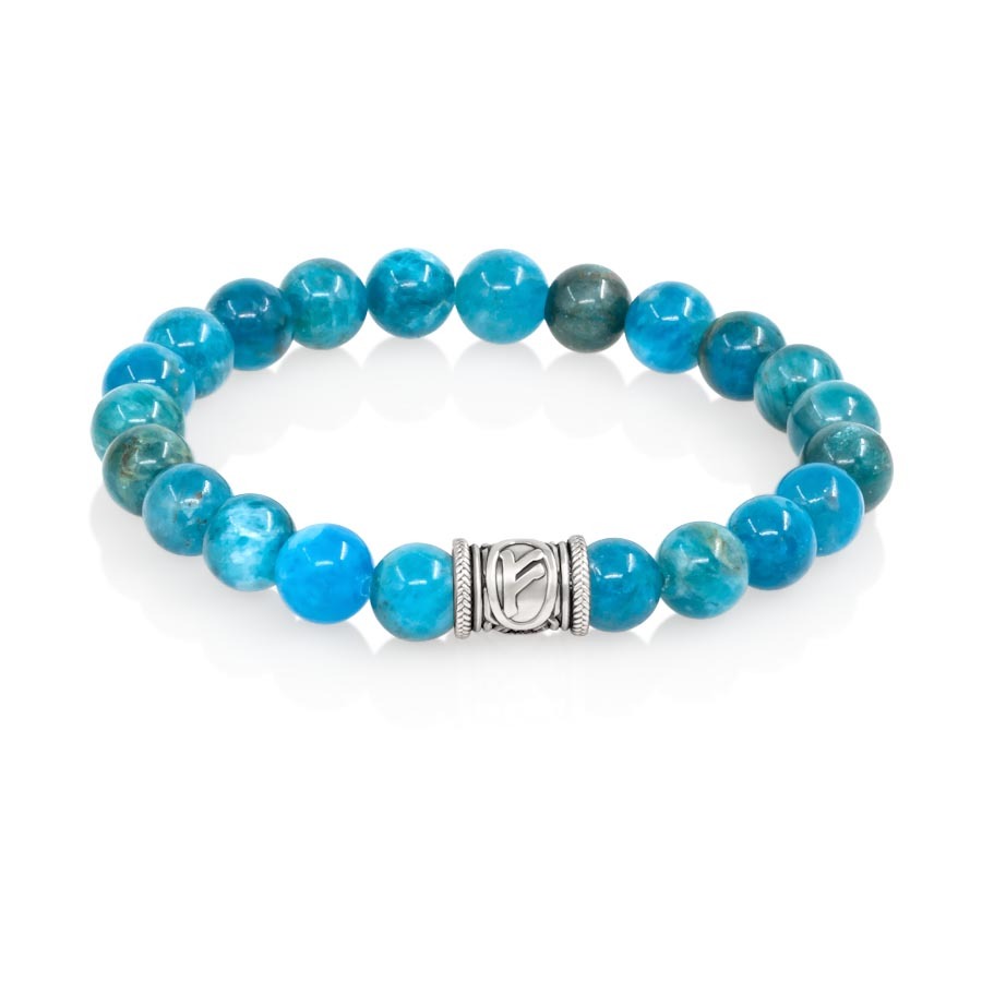 Браслет Денежный импульс из натурального апатита с руной Феху из серебра 925