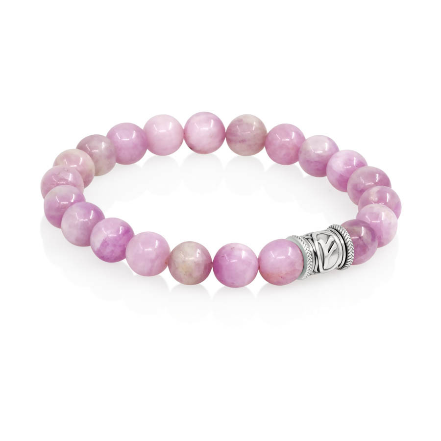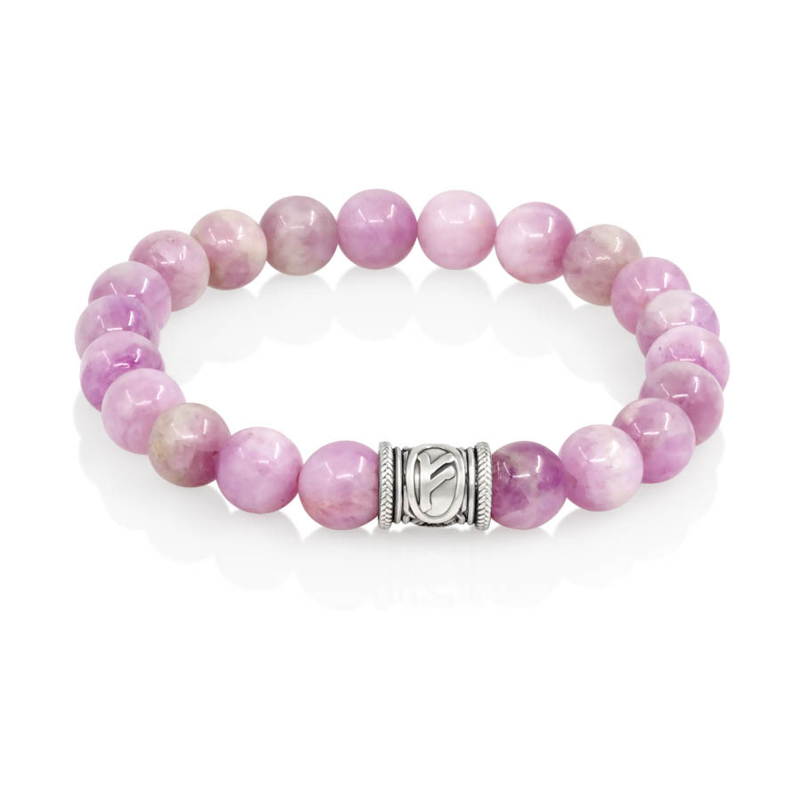 Браслет Денежный импульс из натурального кунцита с руной Феху из мельхиора