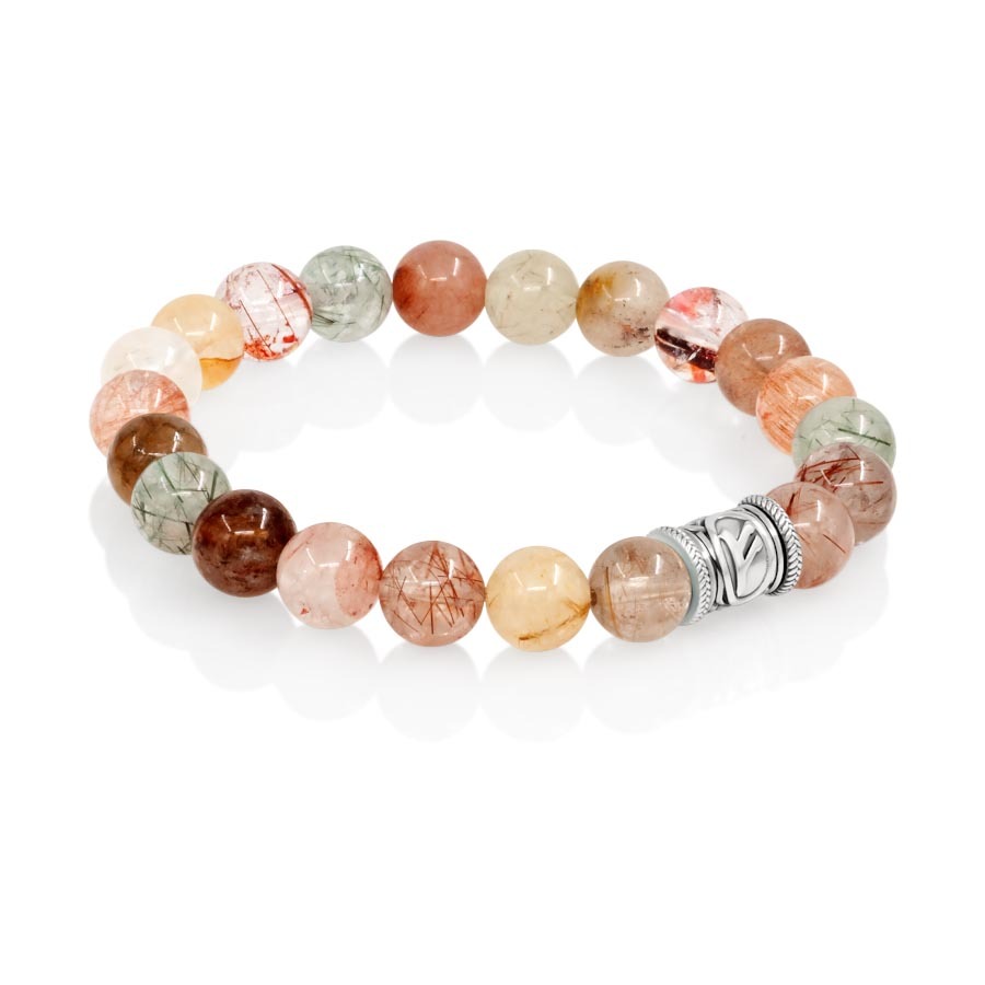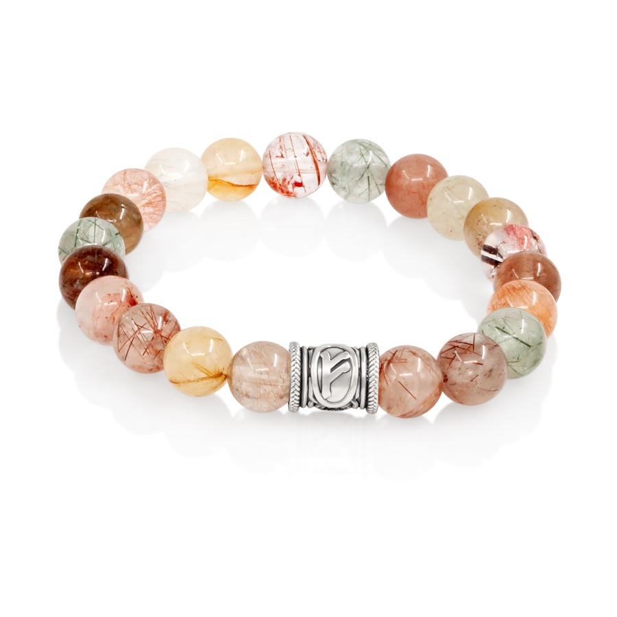 Браслет Денежный импульс из натурального кварца волосатика с руной Феху из мельхиора