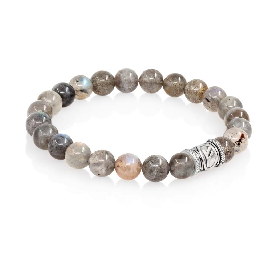 Браслет Денежный импульс из натурального лабрадора с руной Феху из мельхиора