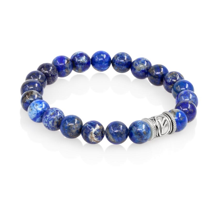 Браслет Денежный импульс из натурального лазурита с руной Феху из мельхиора