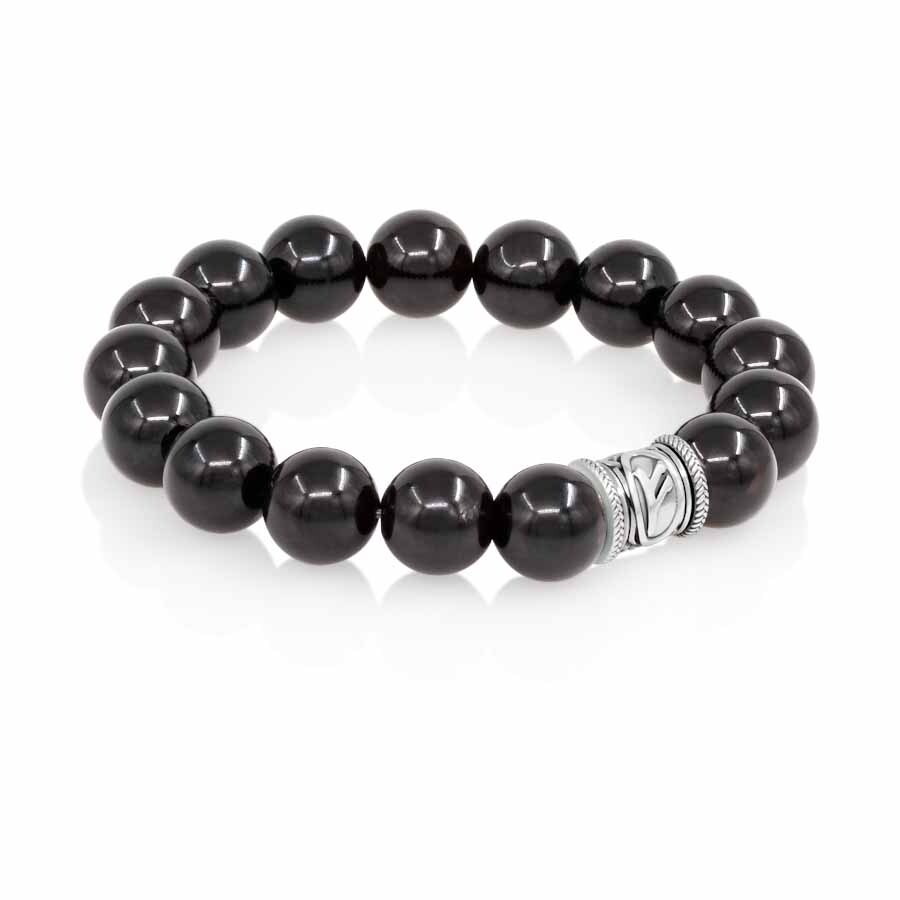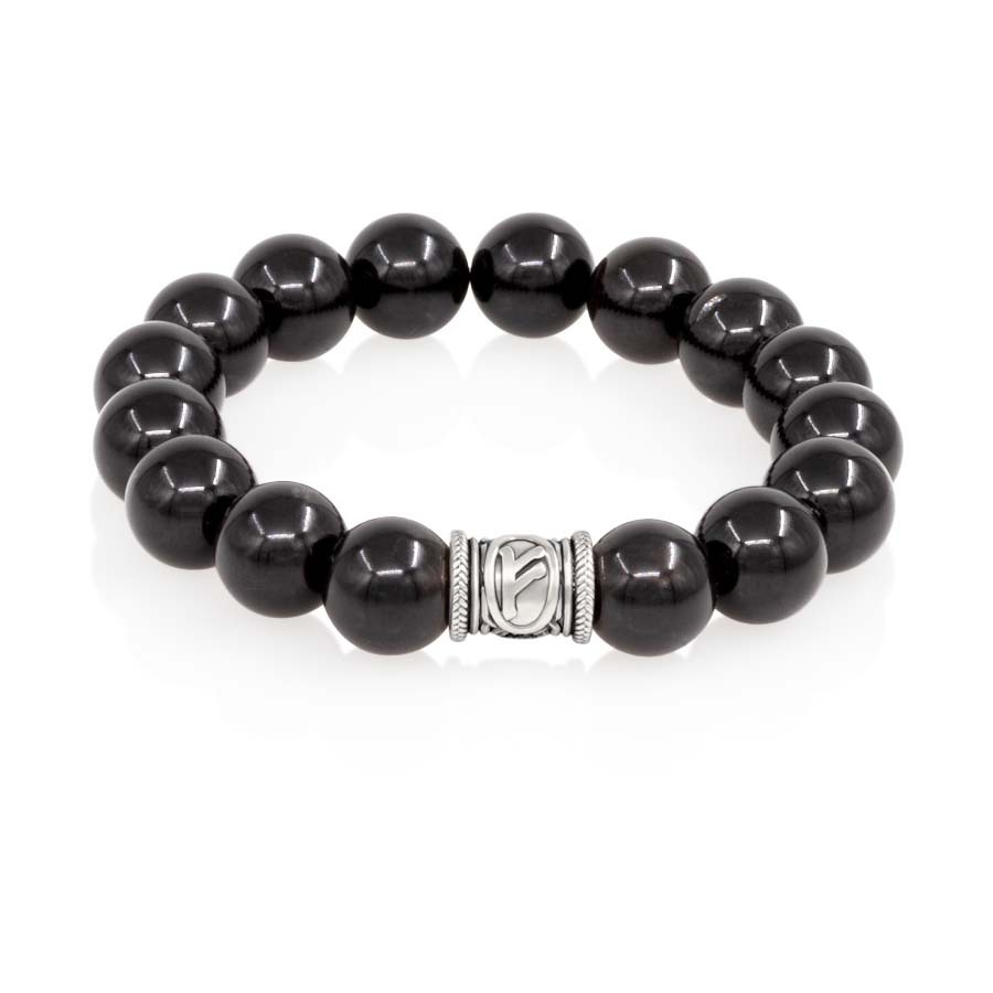 Браслет Денежный импульс из природного мориона с руной Феху из серебра 925