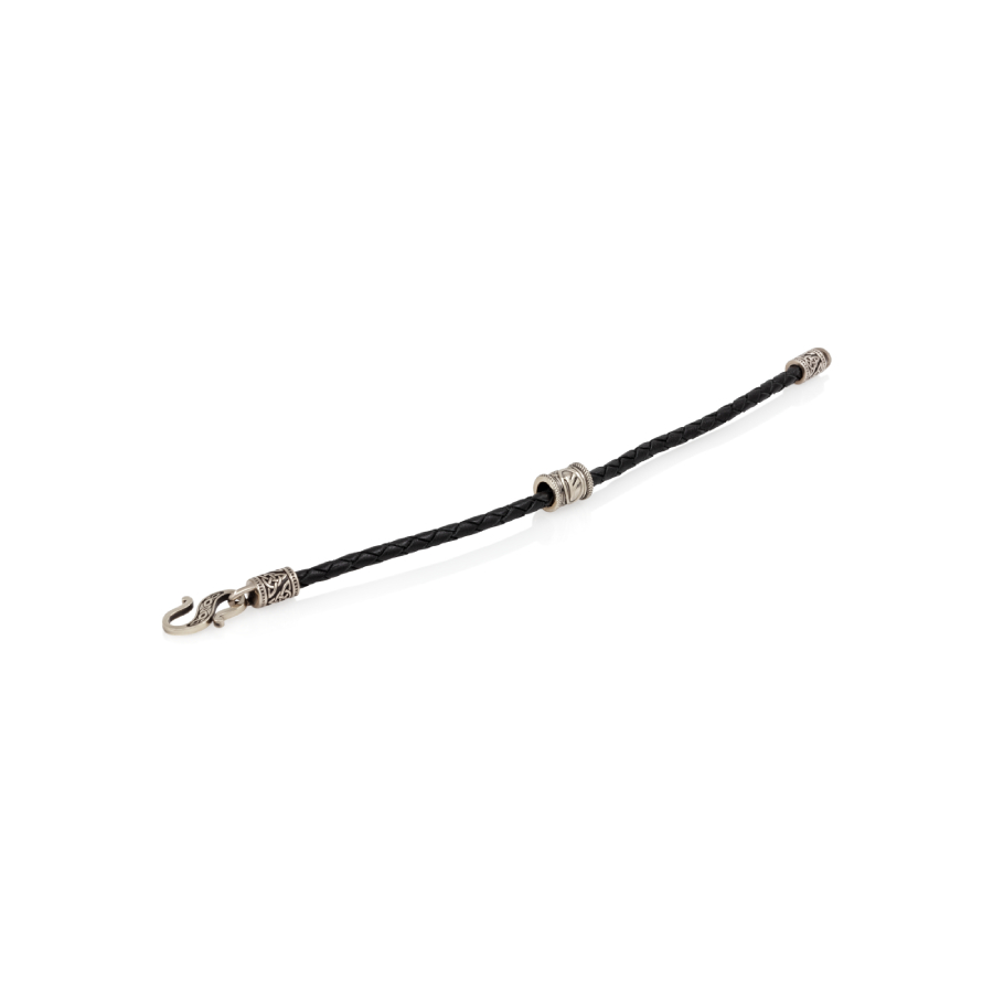 Плетёный шнур выполнен из натуральной кожи. Диаметр гайтана составляет 3 мм.