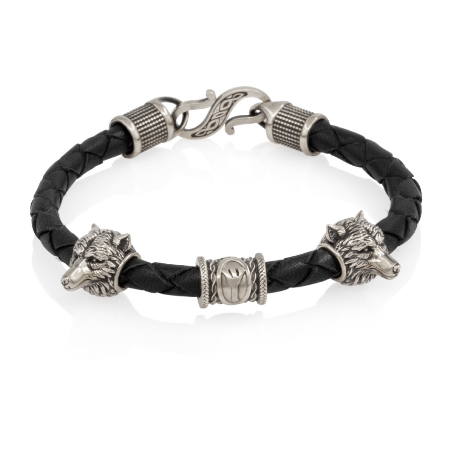 Каждая деталь этого браслета пропитана древней мудростью скандинавских традиций. Руна Альгиз - символ божественной защиты, интуиции и жизненной энергии. Помогает сохранять спокойствие и оберегает владельца от негативных воздействий. Шарм «Волк» олицетворяют верность, силу духа и независимость. Детализированное изготовление из мельхиора придает аксессуару брутальный и благородный вид.