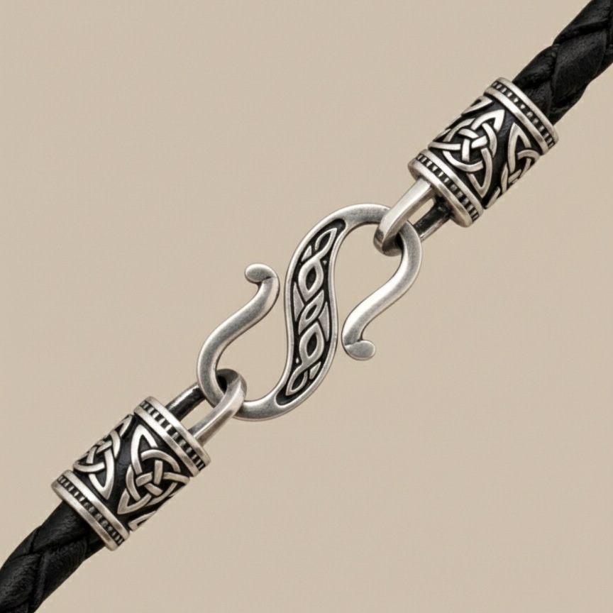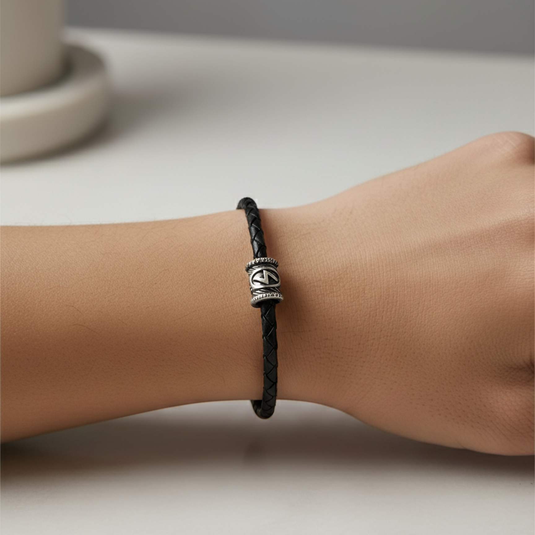 Браслет гайтан с руной Соулу — стильное и символичное украшение изготовленное из натуральной кожи. Руна Соулу их мельхиора символизирует победы и успех в любом начинании. Размер подбирается индивидуально — по обхвату запястья. Изделие подходит под любые шармы и подвески диаметром до 3 мм, или может использоваться как самостоятельное украшение.