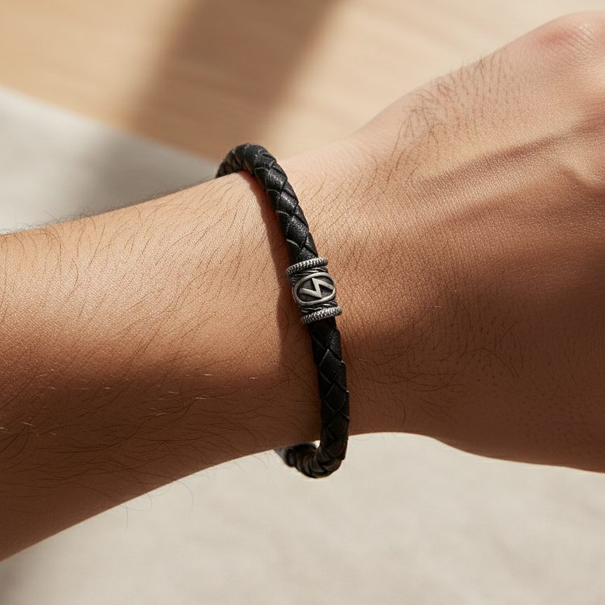 Браслет гайтан с руной Соулу — стильное и символичное украшение изготовленное из натуральной кожи. Руна Соулу их мельхиора символизирует победы и успех в любом начинании. Размер подбирается индивидуально — по обхвату запястья. Изделие подходит под любые шармы и подвески диаметром до 5 мм, или может использоваться как самостоятельное украшение.