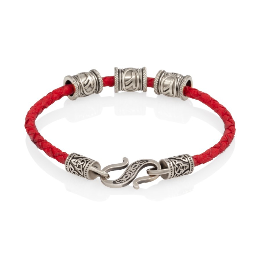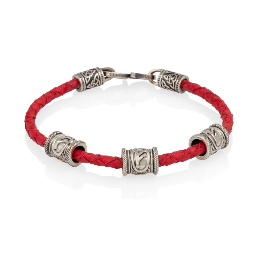Прочный и надёжный, как уверенность самого Одина, красный гайтан переплетается с мельхиоровыми рунами Феху. Они расположены так, чтобы синхронизировать стремления с истинным предназначением.