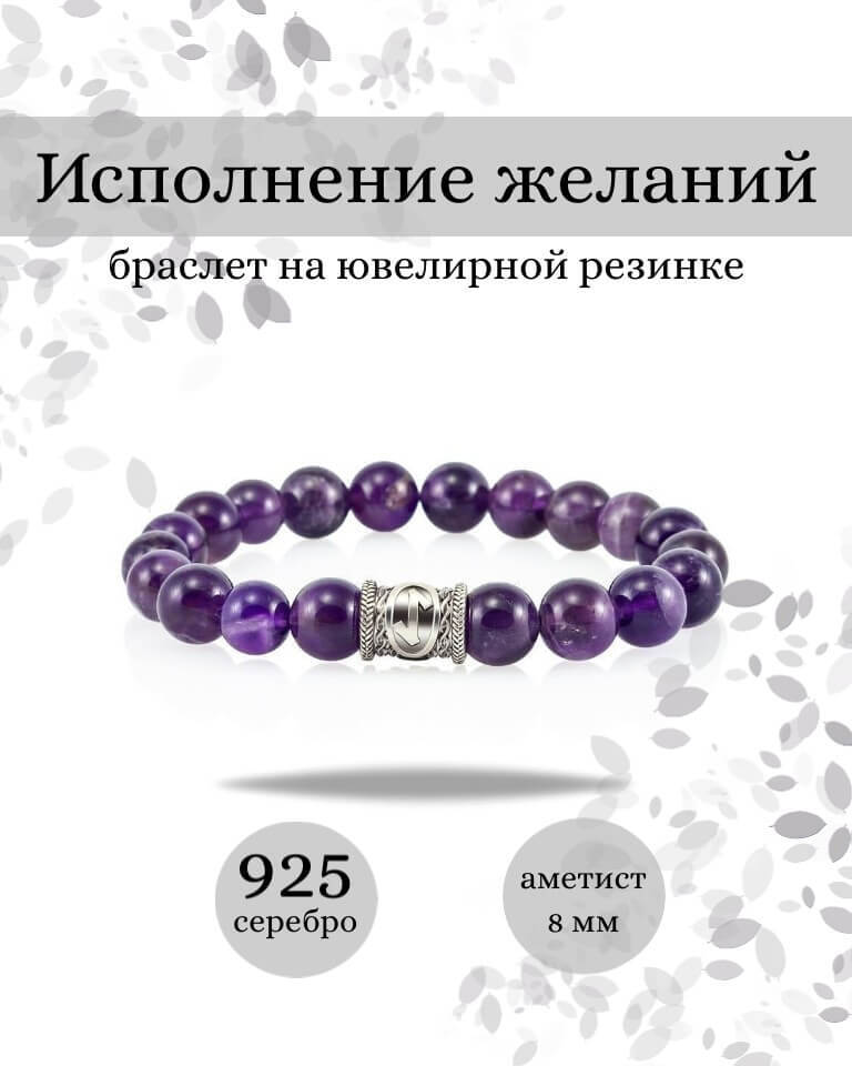 Браслет Исполнение желаний эффектное дополнение к вашему повседневному или вечернему стилю одежды. Представлена данная модель в вариации из натурального камня аметиста. Он обладает исключительно необычайными магическими свойствами и темным, глубоким цветом.