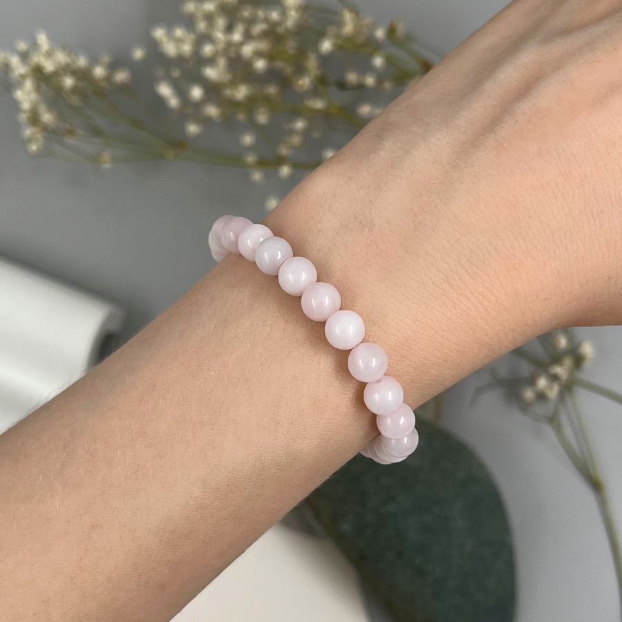Браслет из натурального розового кварца - настоящее произведение искусства. Считается, что этот камень приносит любовь, счастье и гармонию своему владельцу.
