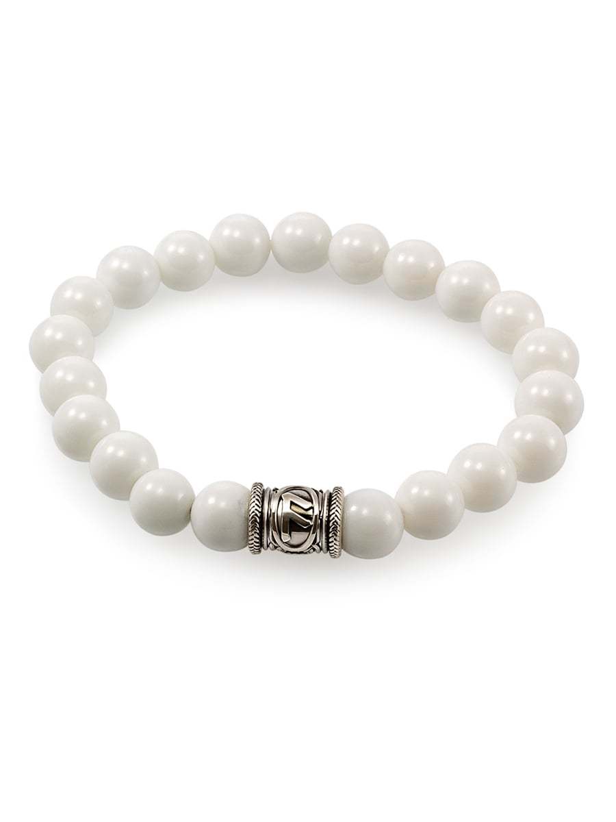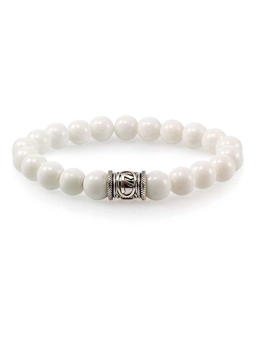 Браслет сделан из керамических бусин, нанизанных на эластичную нить, которая связывается в прочный тройной узел, браслет не имеет замка, он просто и хорошо растягивается в пределах своего размера, это полностью ручная работа. Руна выполнена, в серебре 925 пробы с обработкой в виде чернения.