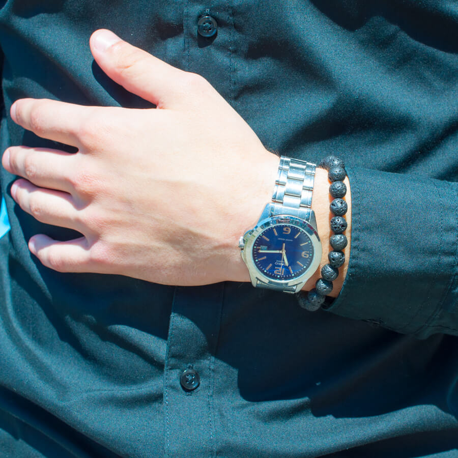 Браслет изготовлен в виде классического украшения на руку, в этой модели браслета коллекции Classic мы не используем шармов и спейсеров. В основе браслета натуральный камень лава, диаметр бусины 8 мм, блеск камня матовый сухой полировки методом галтования. Бусины лавы скреплены высокопрочной эластичной нитью диаметром 1 миллиметр.