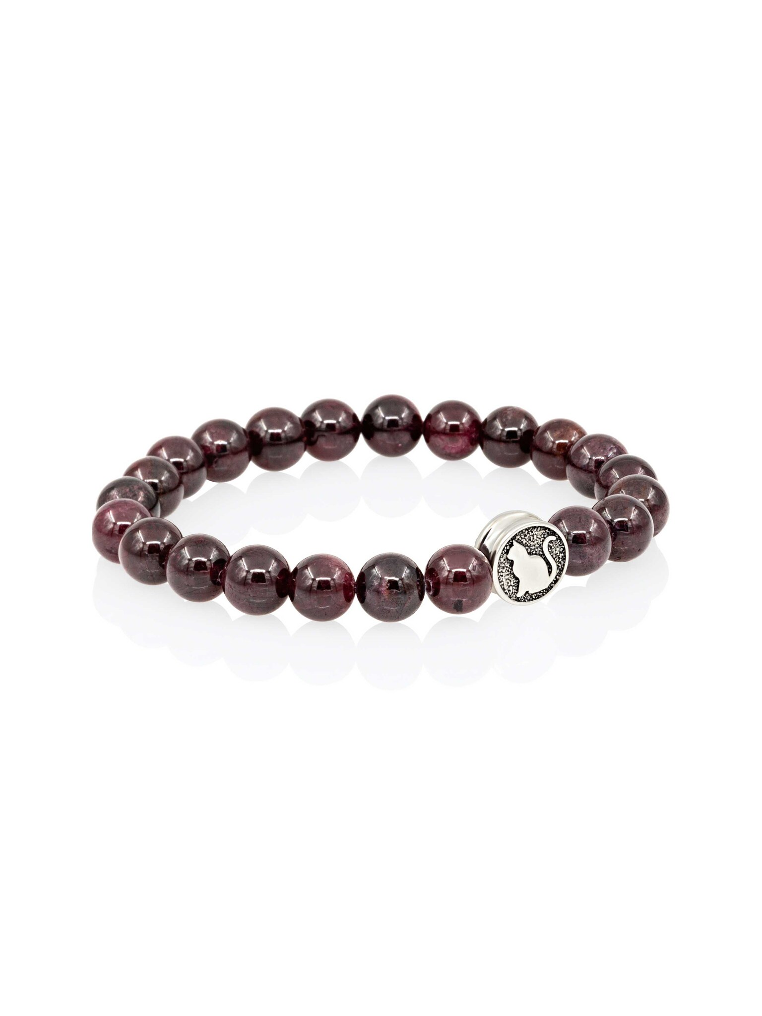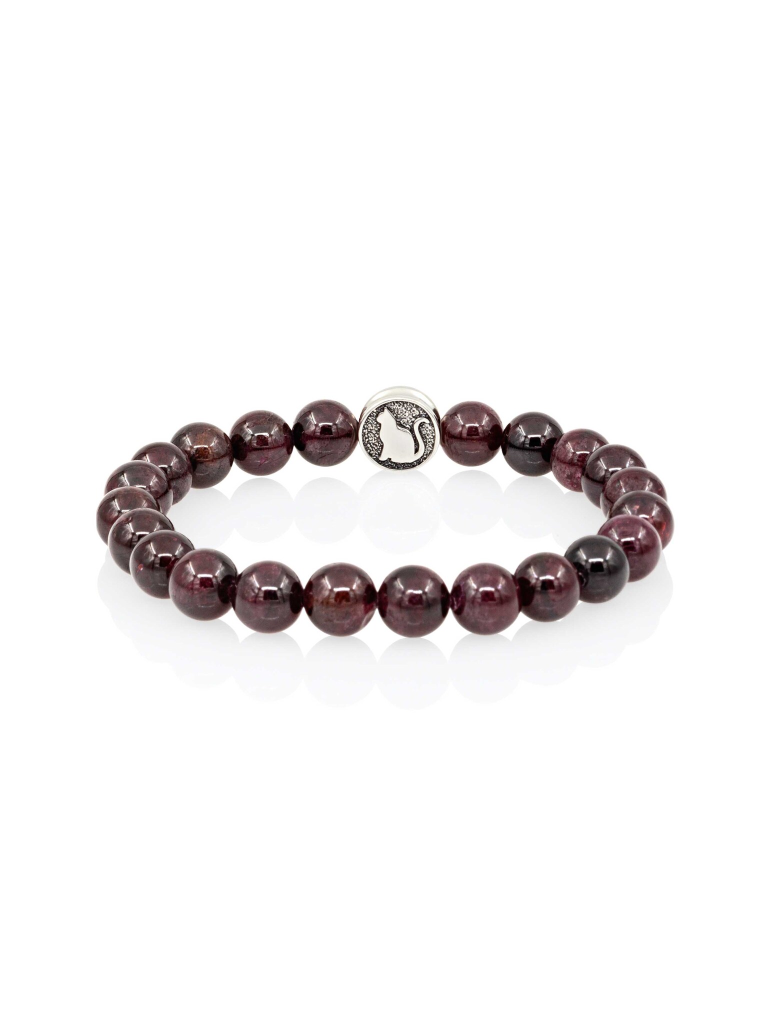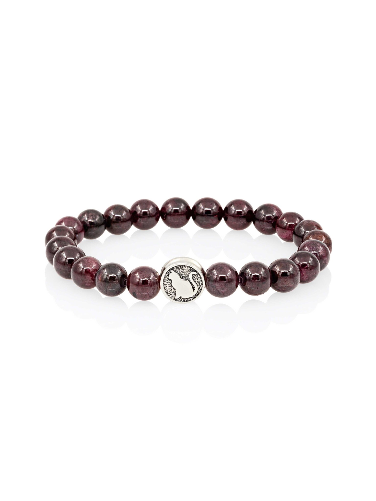 Бусины браслета изготовлены из натурального природного граната. Диаметр бусин - около 8 мм. Вес шарма-спейсера с изображением кошки - около 1.8 г. Шарм изготовлен из серебра 925 пробы с чернением.
