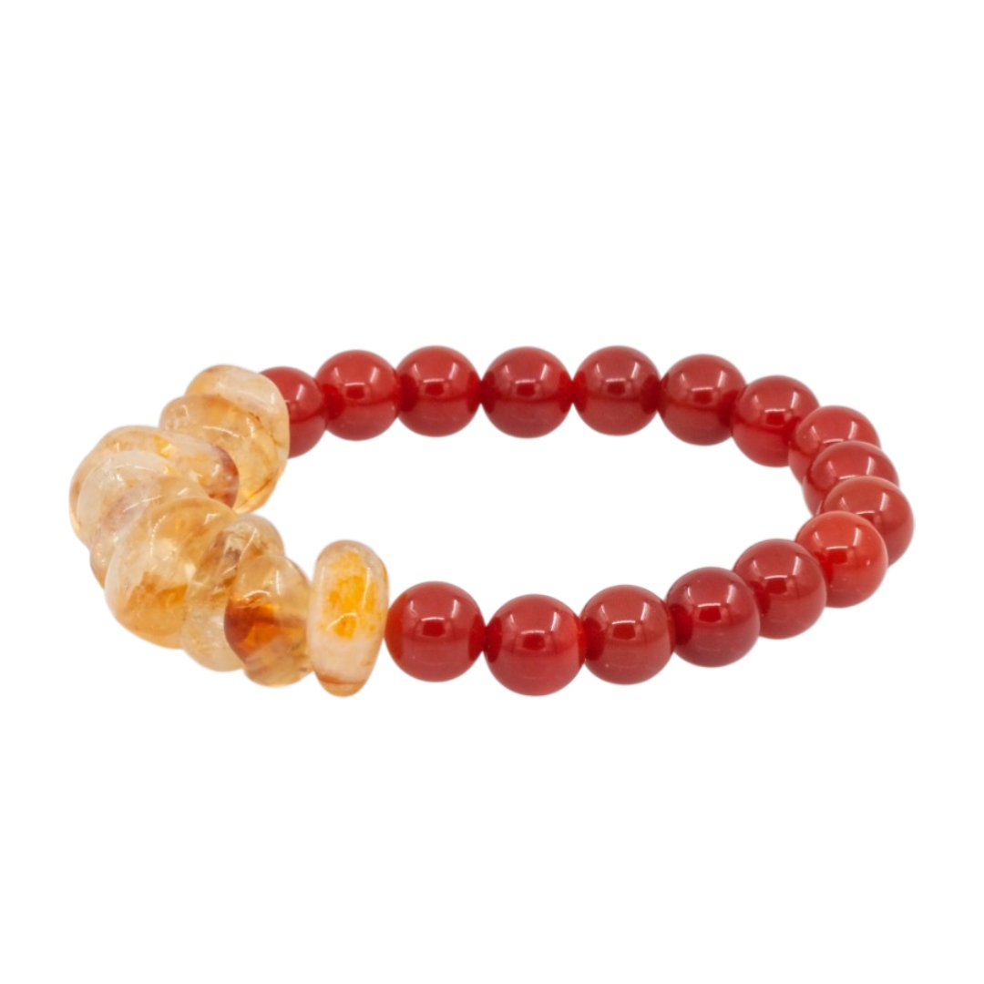 Браслет из цитрина и сердолика ценится не только за яркое, тёплое сочетание оттенков, но и за свои символические свойства. Цитрин считается камнем изобилия и позитивной энергии: ему приписывают способность притягивать удачу, усиливать уверенность в себе и вдохновлять на новые начинания. Он ассоциируется с ясностью ума, радостью и внутренним светом.