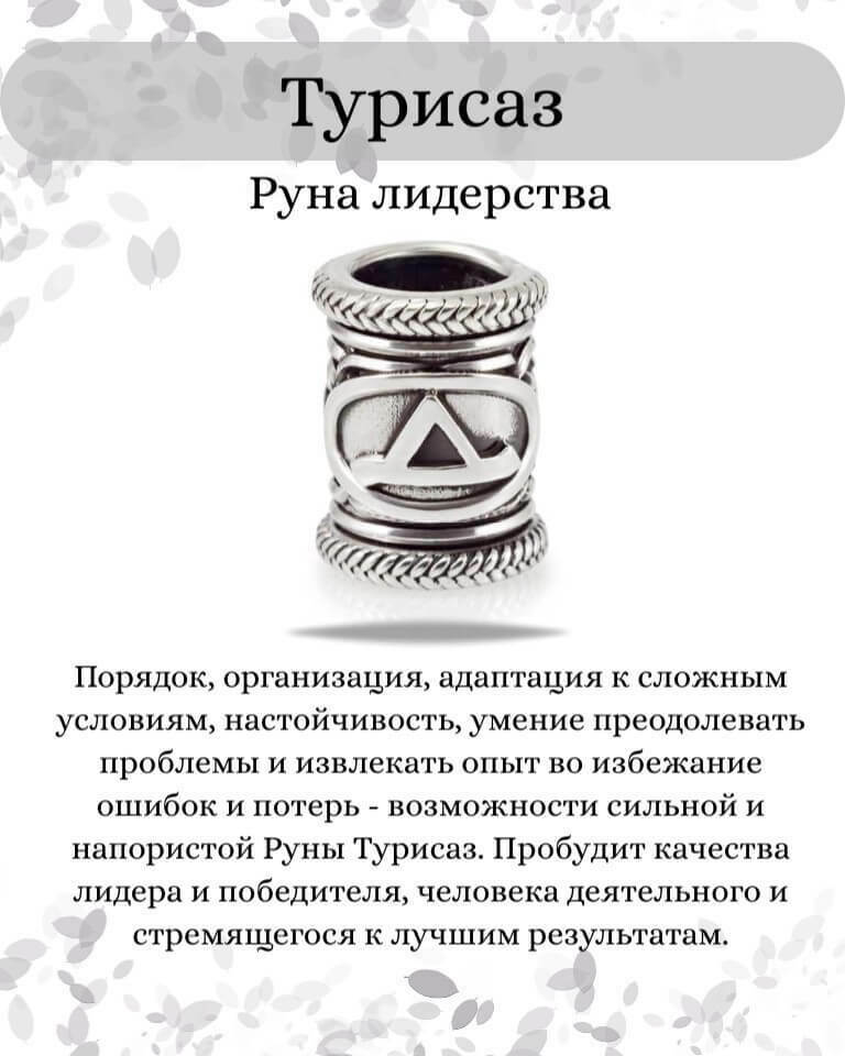 Браслет "Максимальная защита" - это мощный источник силы и защиты. Руны Турисаз, Тейваз и Турисаз, вписанные в этот браслет, являются мощным талисманом, способным создать непроницаемый щит вокруг своего обладателя.