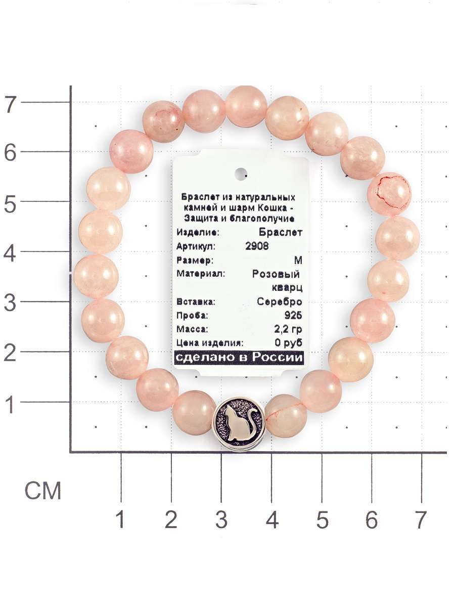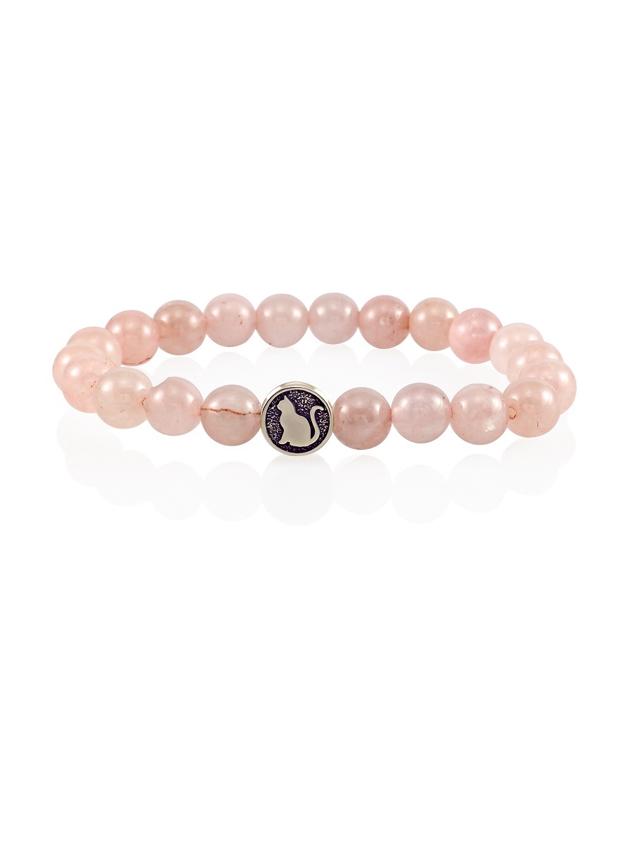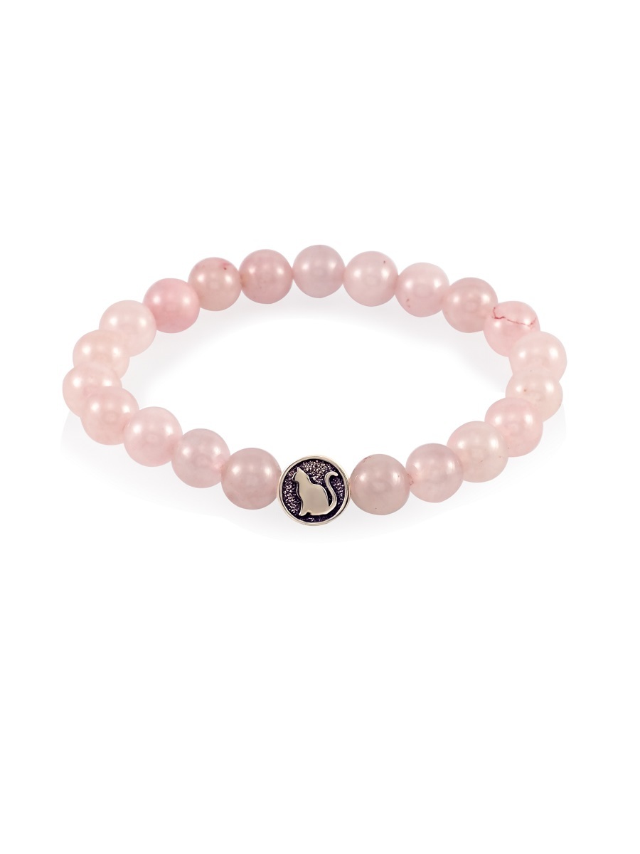 Бусины браслета изготовлены из натурального природного розового кварца. Диаметр бусин - около 8 мм. Вес шарма-спейсера с изображением кошки - около 1.8 г. Шарм изготовлен из серебра 925 пробы с чернением.