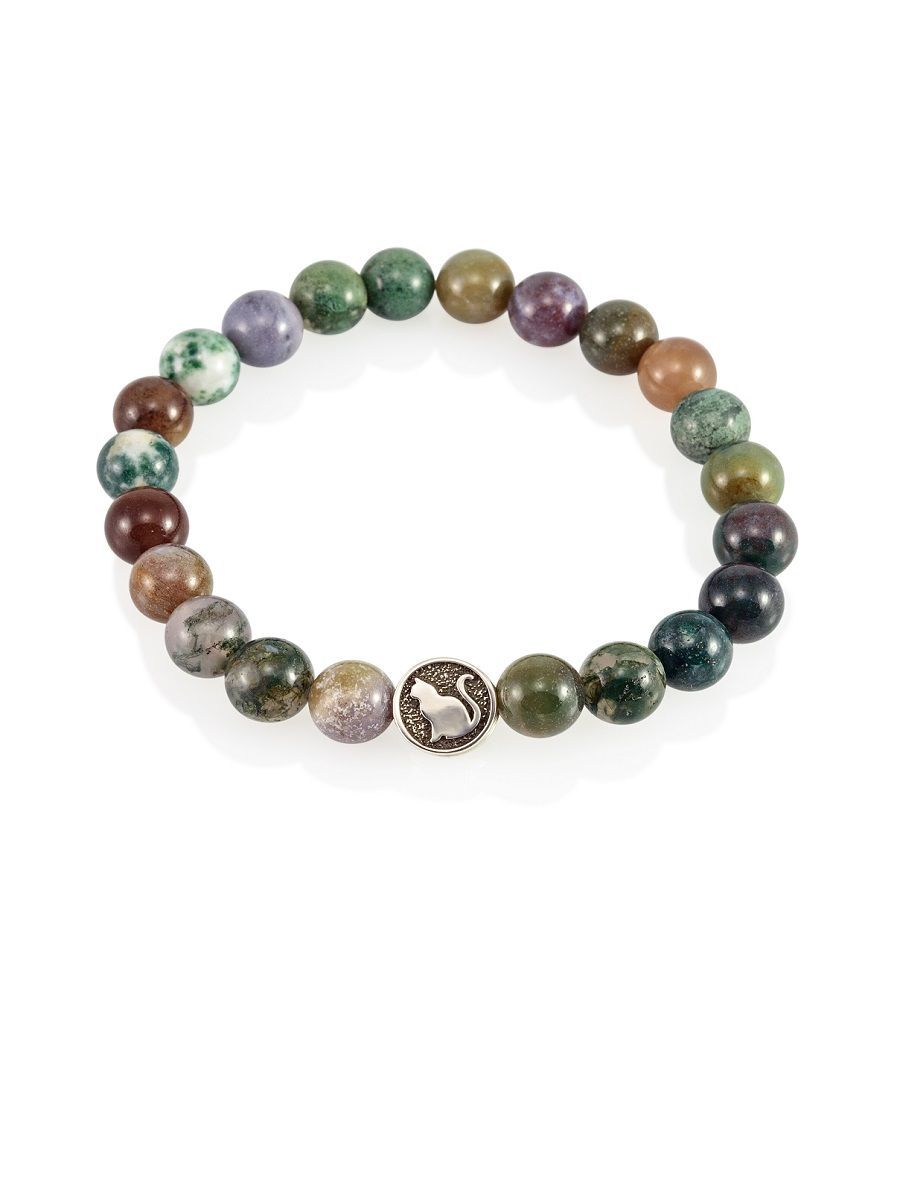 О браслете из натуральной зеленой яшмы с шармом Кошка