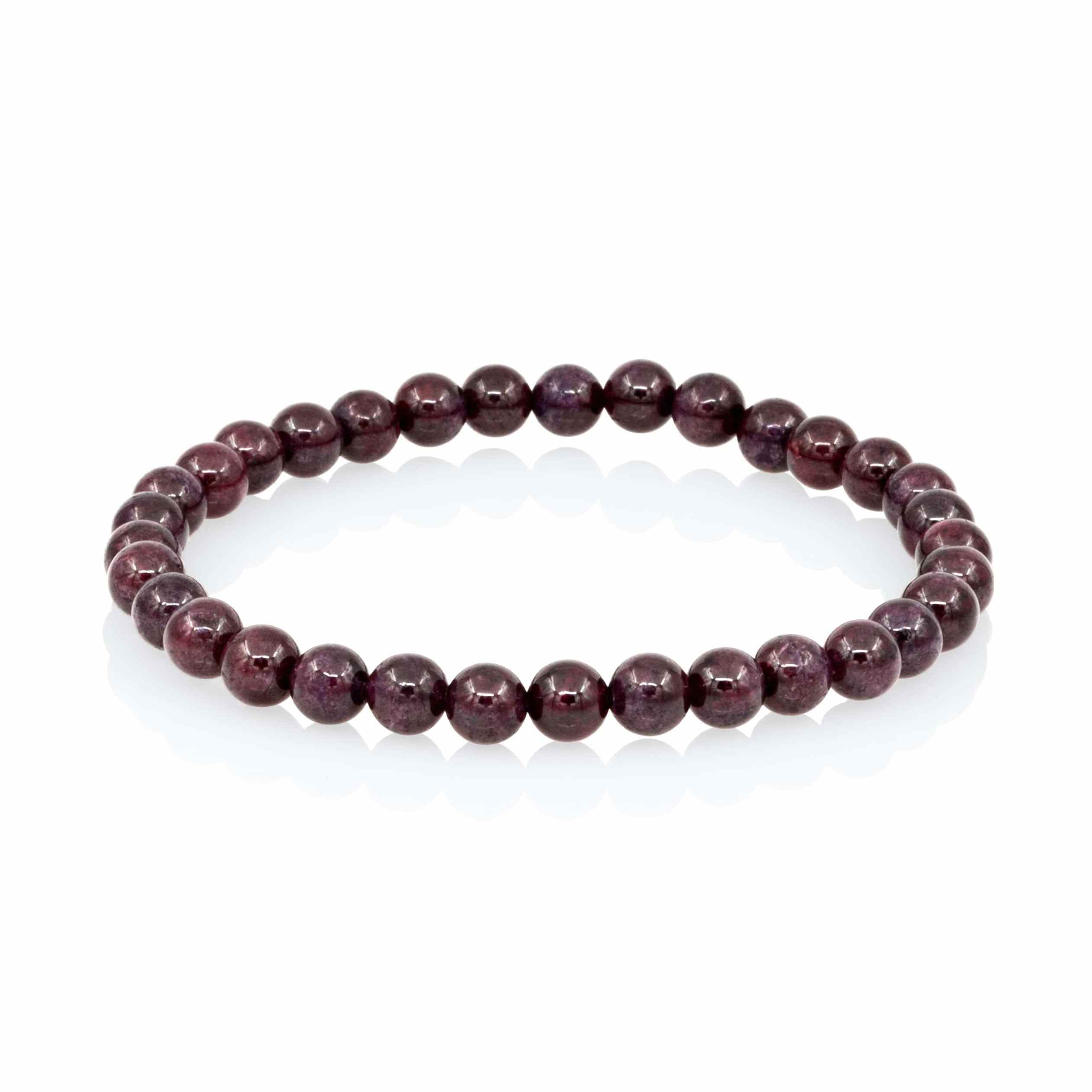 В основе браслета натуральный камень гранат, диаметр камня 6 мм, полированный, блеск естественный, вид полировки - сухое галтование. Скреплен высокопрочной эластичной нитью диаметром 1 миллиметр.