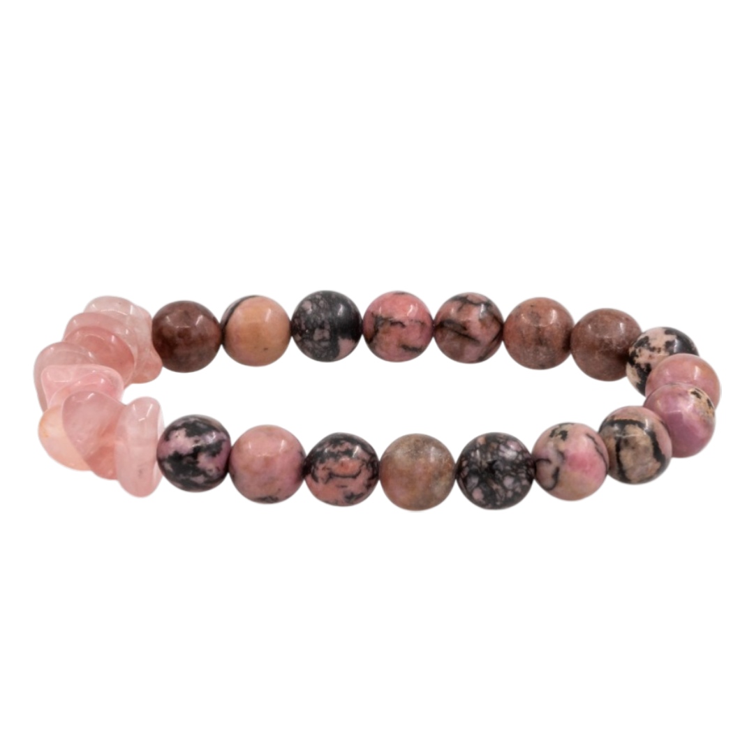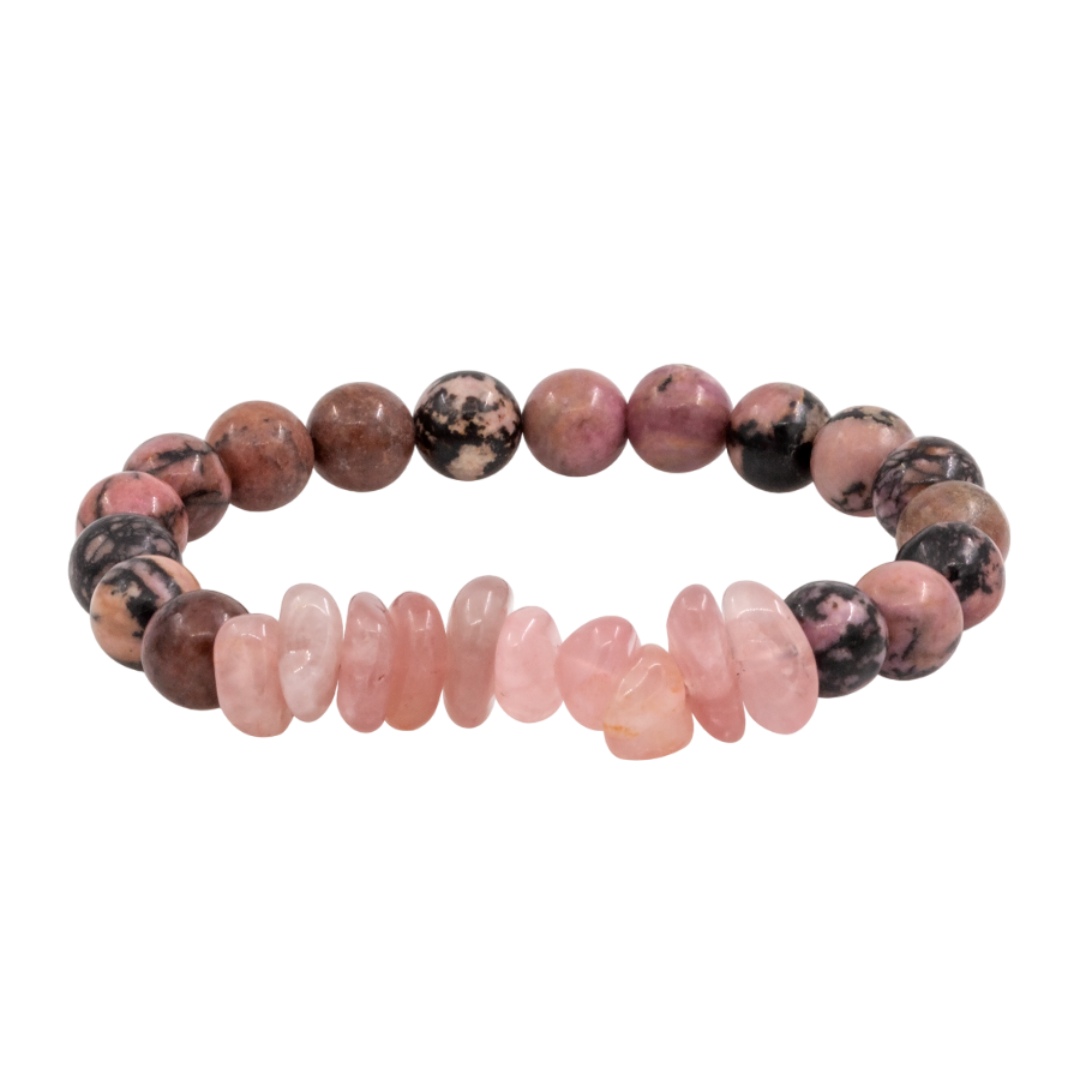 Браслет из родонита и розового кварца ценится не только за нежную, романтичную палитру оттенков, но и за свои символические свойства. Родонит считается камнем эмоционального баланса и прощения: ему приписывают способность помогать справляться с переживаниями, гармонизировать чувства и укреплять внутреннюю уверенность. Он ассоциируется с поддержкой в сложные периоды и восстановлением душевного равновесия.