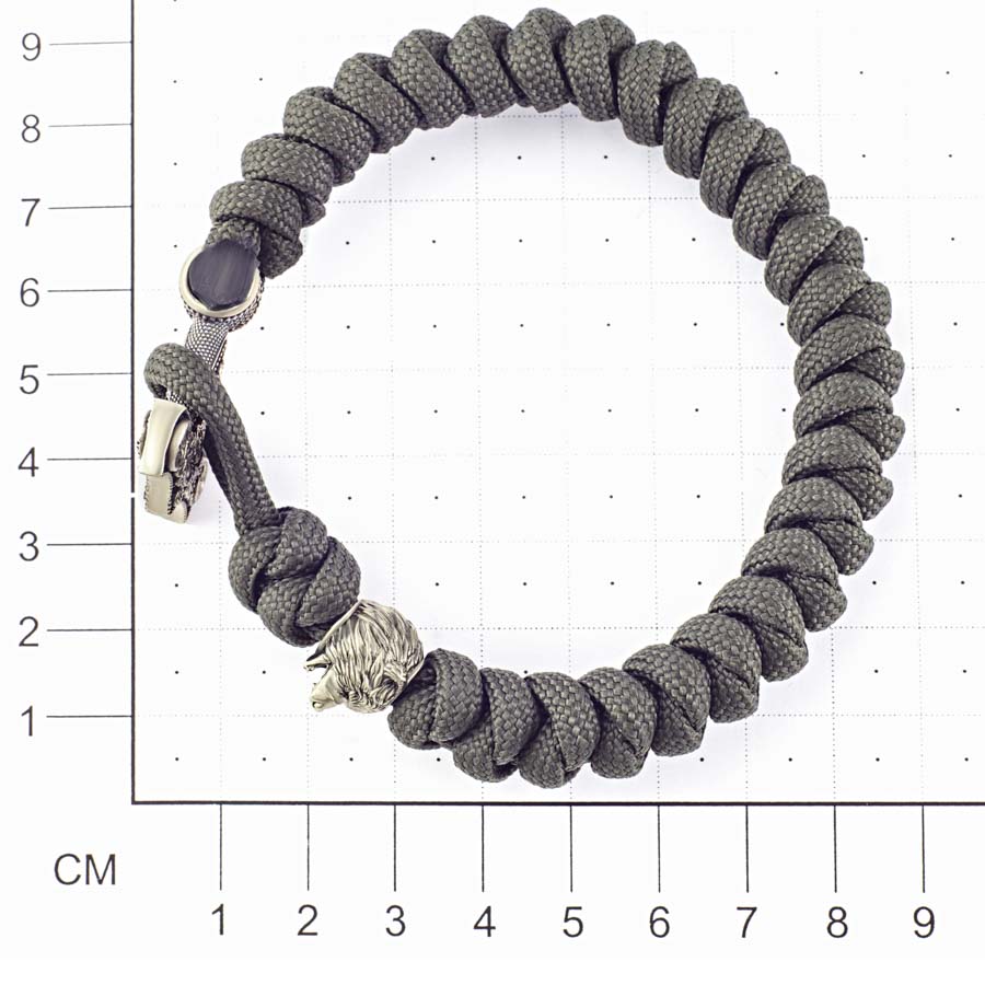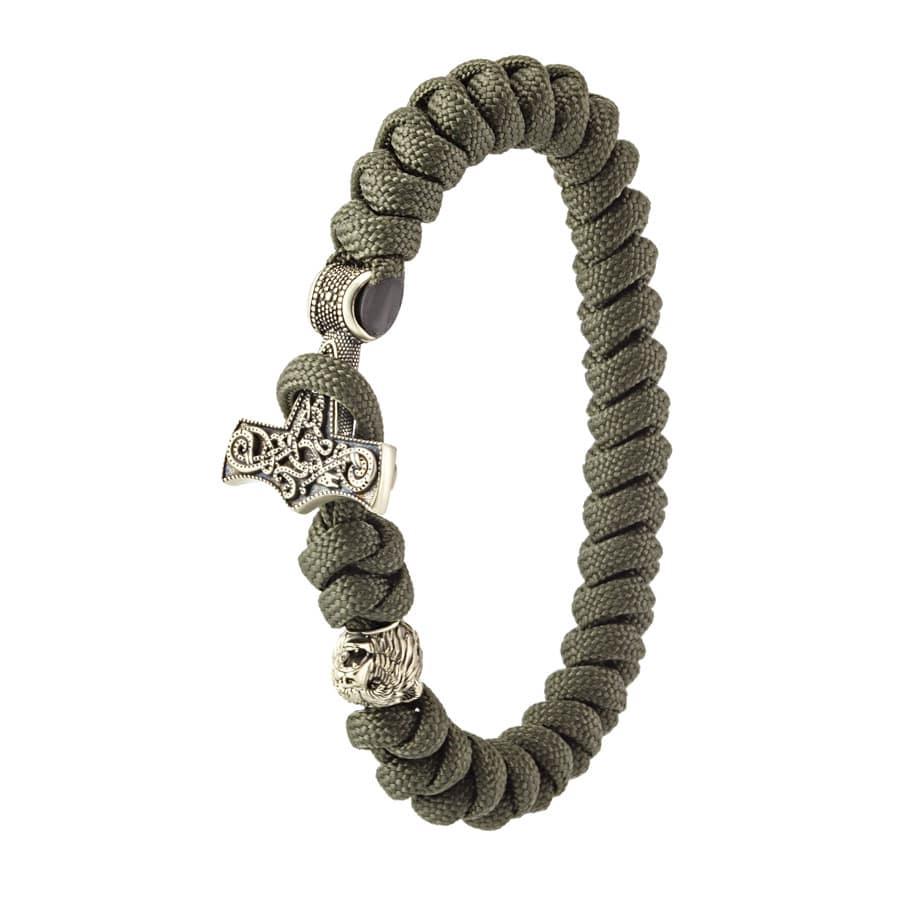 Браслет из оливкового паракорда с молотом Тора Мьёльнир и медведем из мельхиора