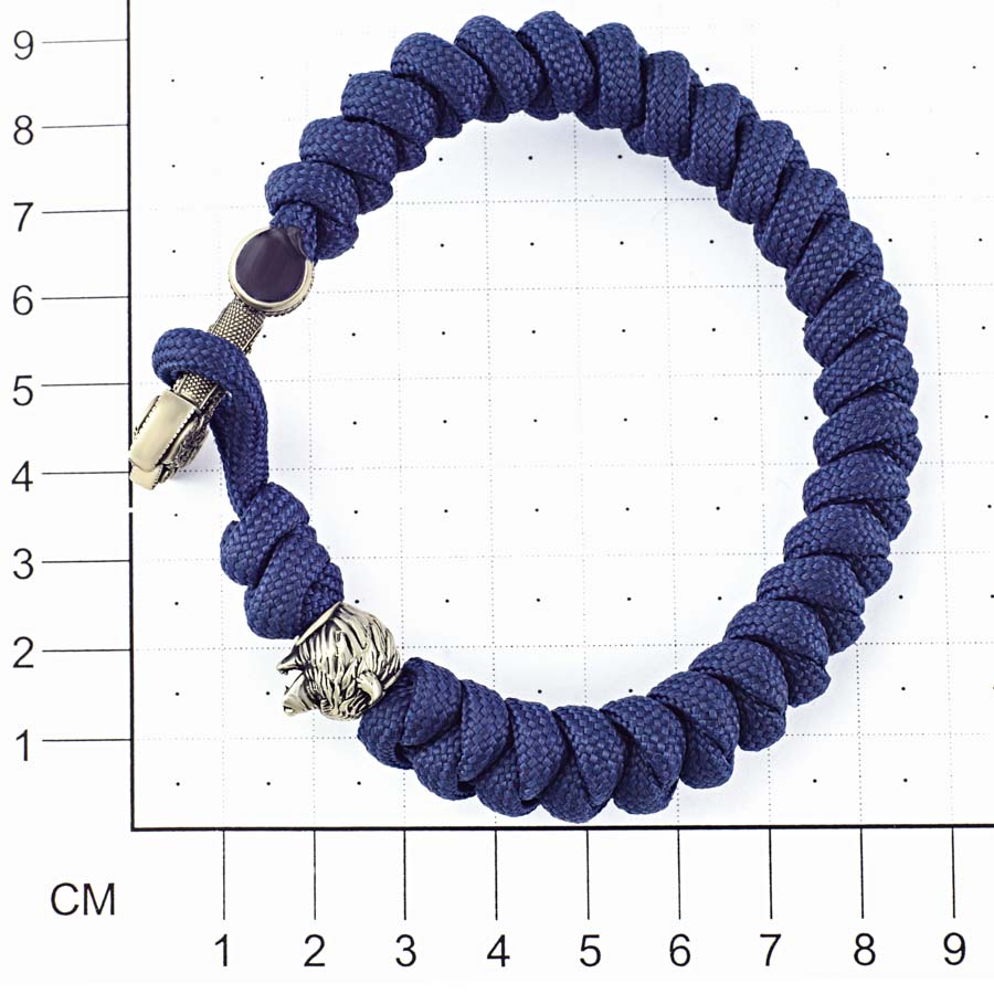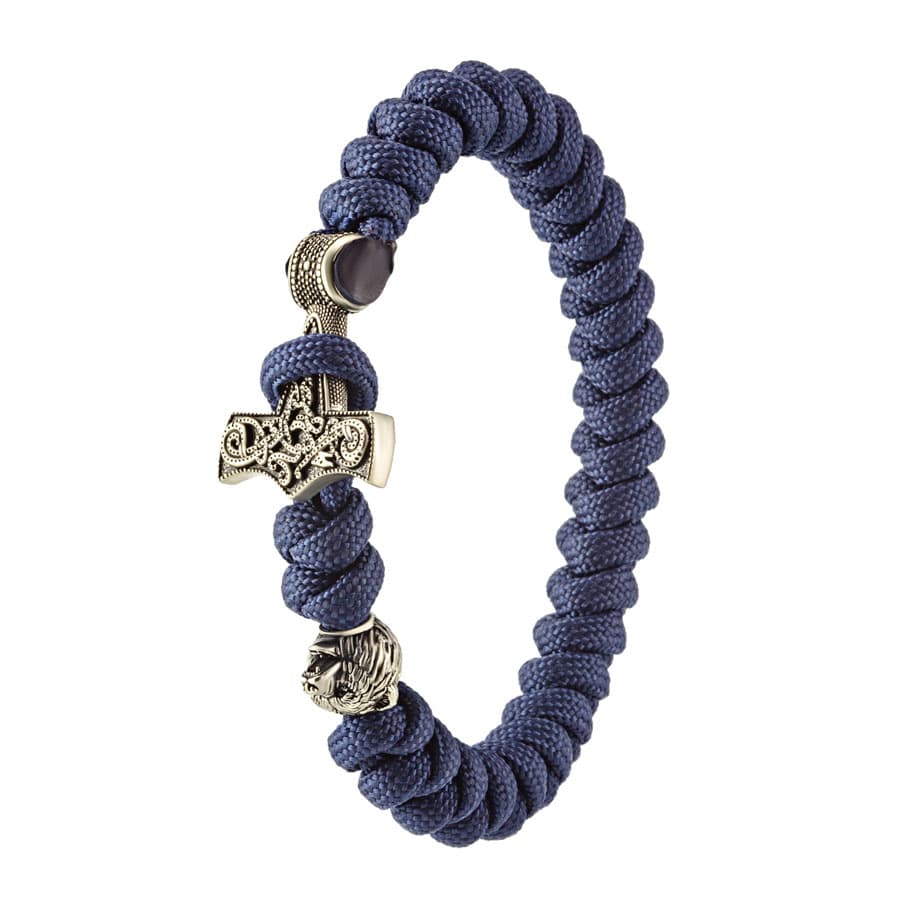 Браслет из синего паракорда с молотом Тора Мьёльнир и медведем из мельхиора