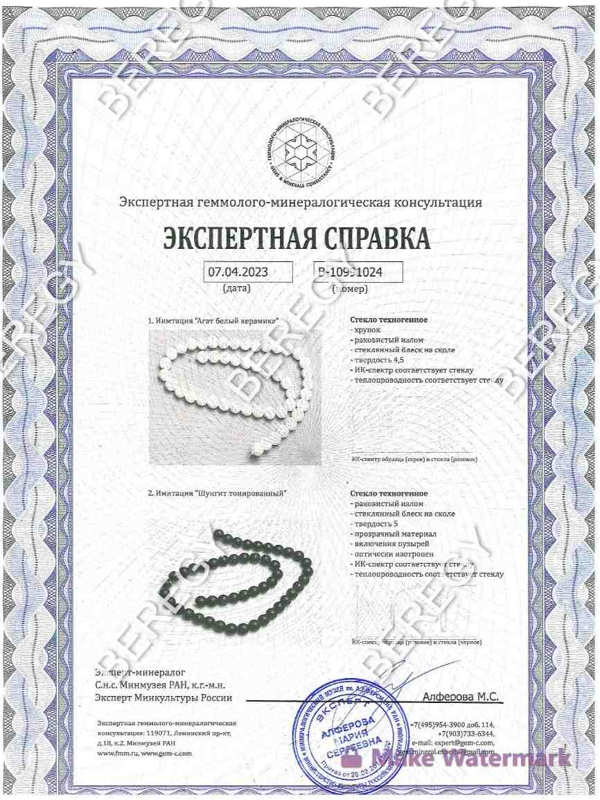 Браслет изготовлен в виде классического украшения на руку, без использования шармов и спейсеров. В основе браслета ювелирная керамика, по внешним свойствам схожая с "шунгитом", диаметром 8 мм, полированный, блеск камня матовый. Скреплен высокопрочной эластичной нитью диаметром 1 миллиметр.