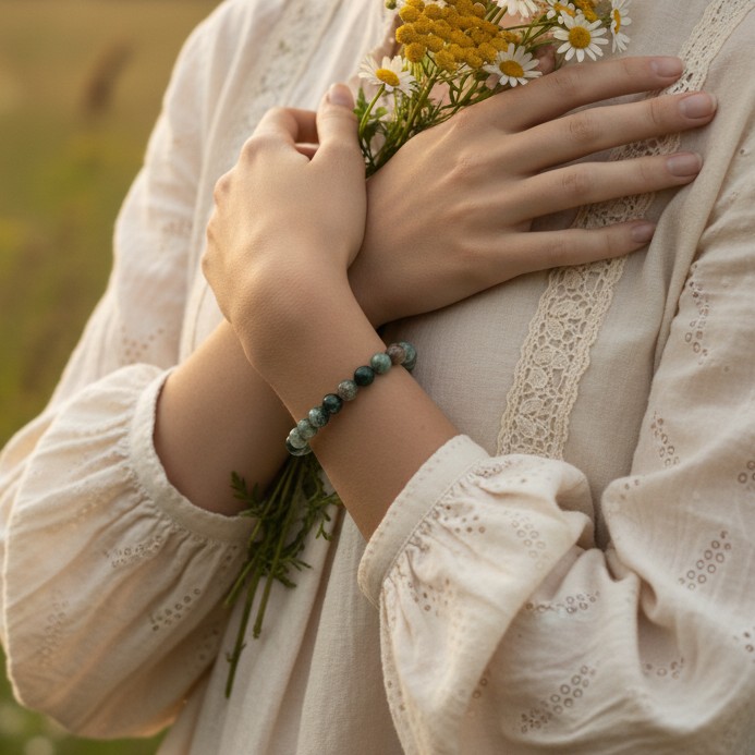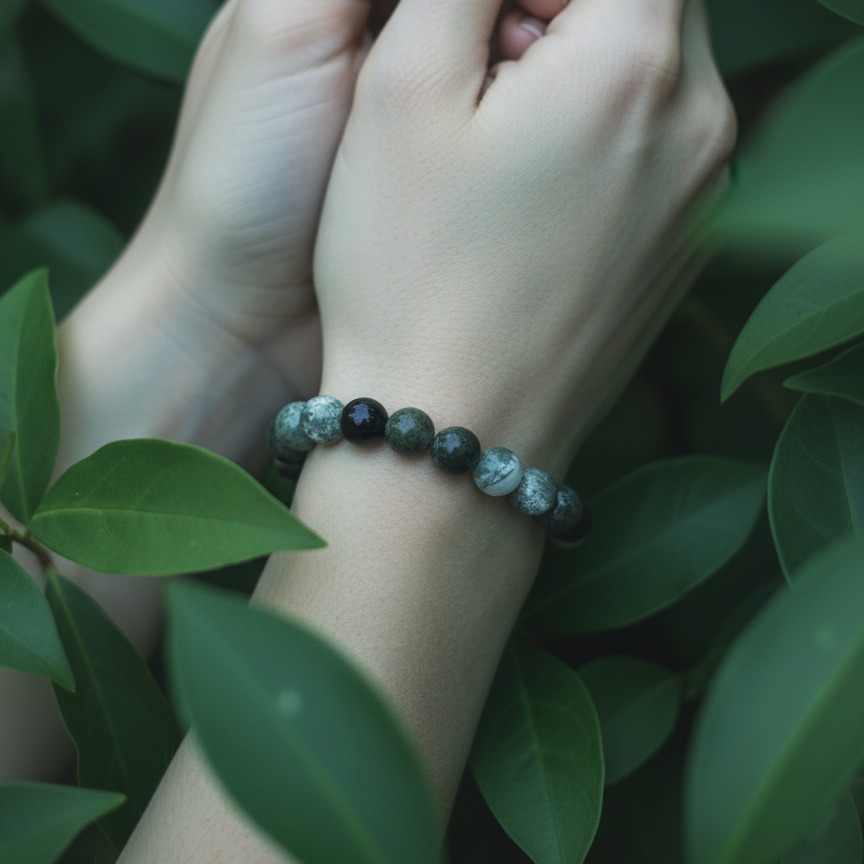 Описание браслета из зеленой яшмы