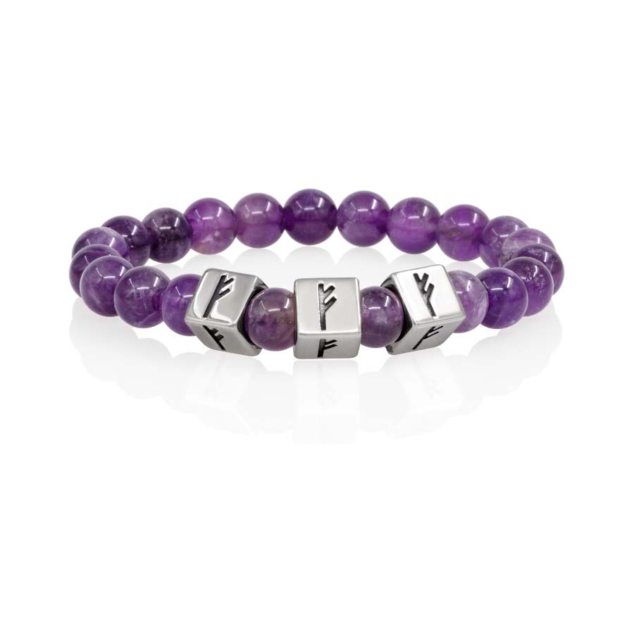 Браслет «Изобилие и рост» из натурального камня аметиста и трех рун Феху объединяет в себе силу камня и рун. Аметист приносит внутреннюю гармонию, духовную мудрость и защиту, а руна Феху символизирует богатство, успех и жизненную энергию.