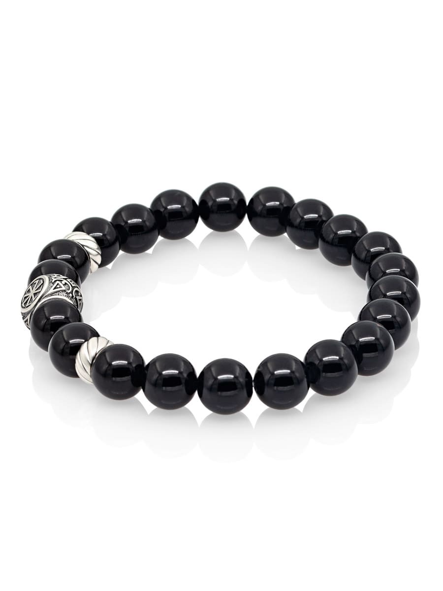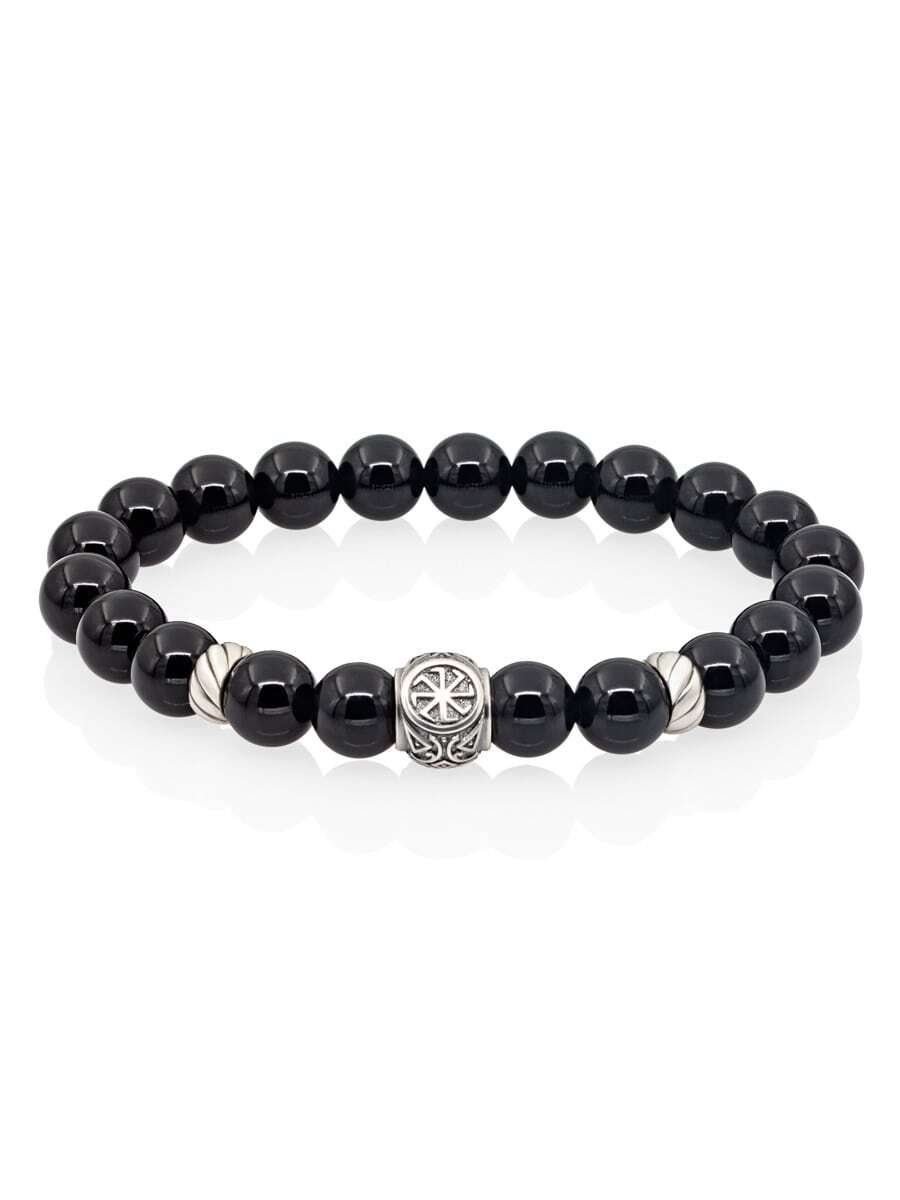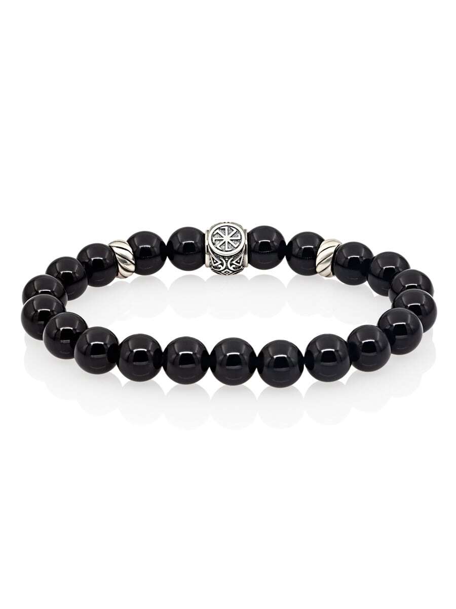 Браслет на руку из натурального черного кварца с шармом Коловрат