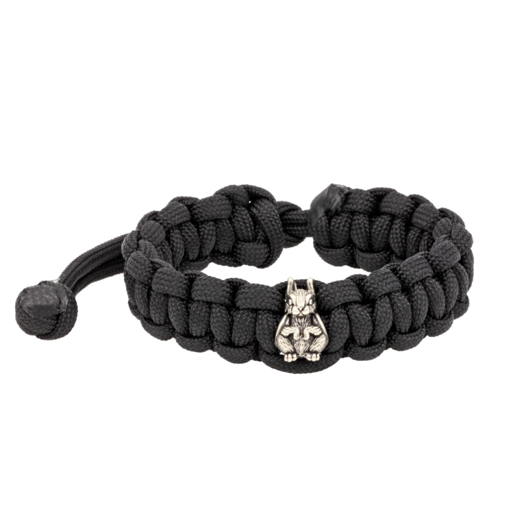 Браслет с шармом Белка из мельхиора - чёрный паракорд