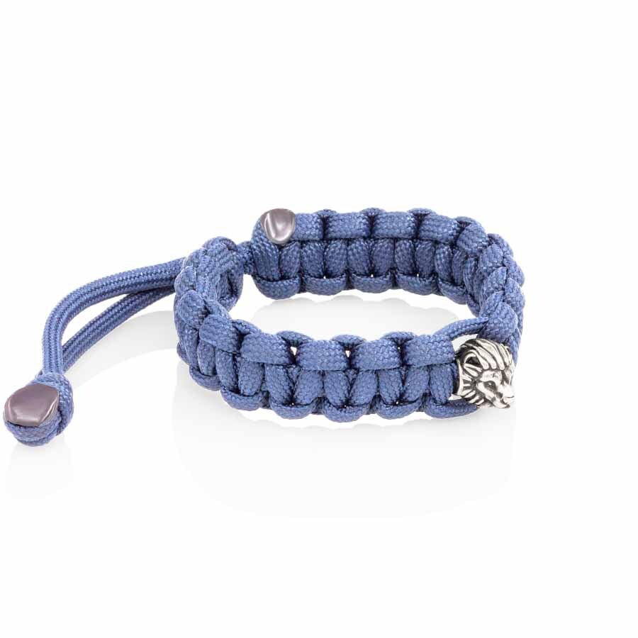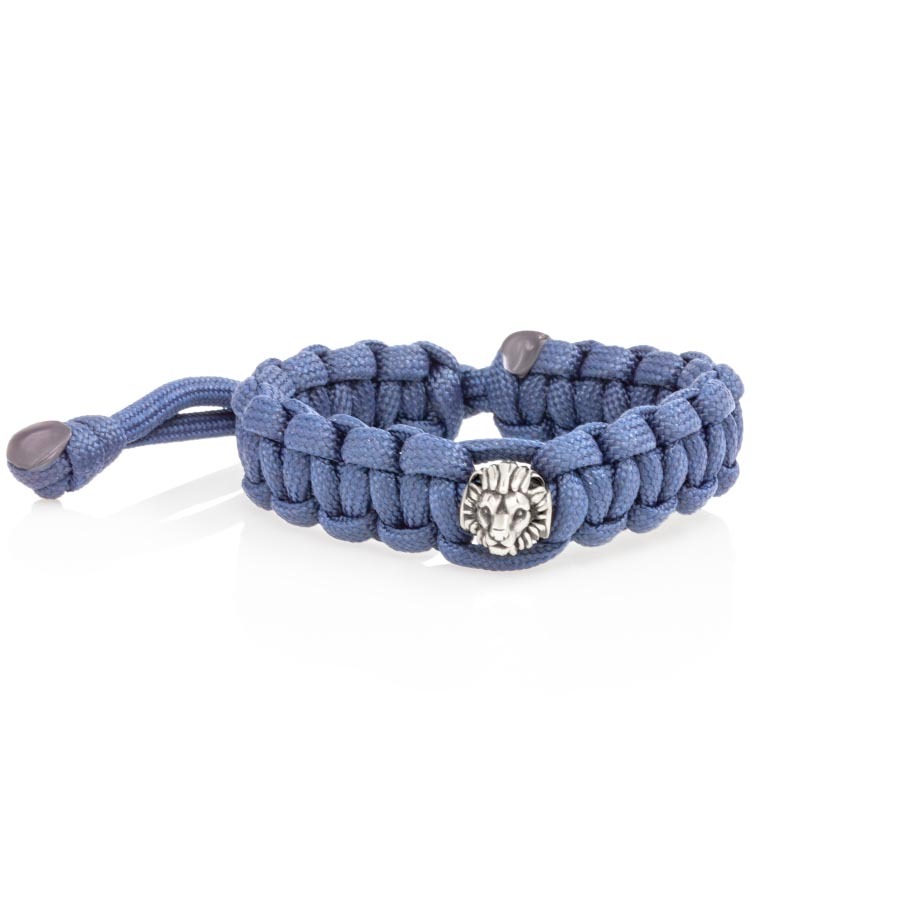 Браслет с шармом Лев из мельхиора - синий паракорд