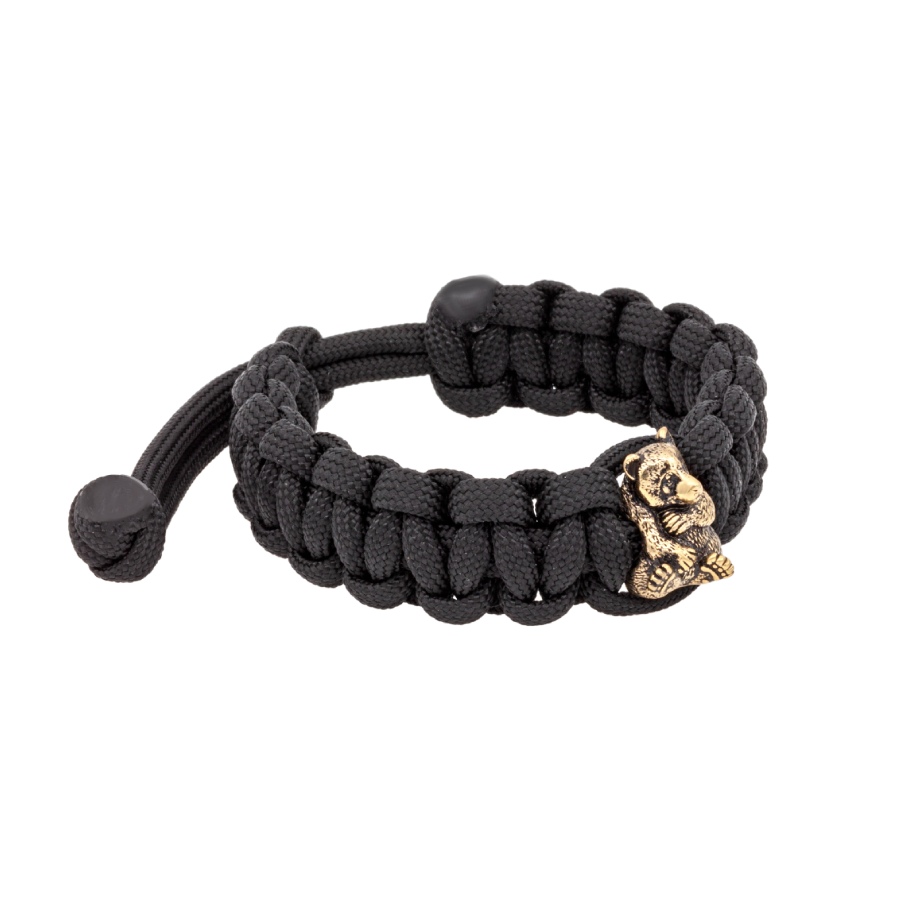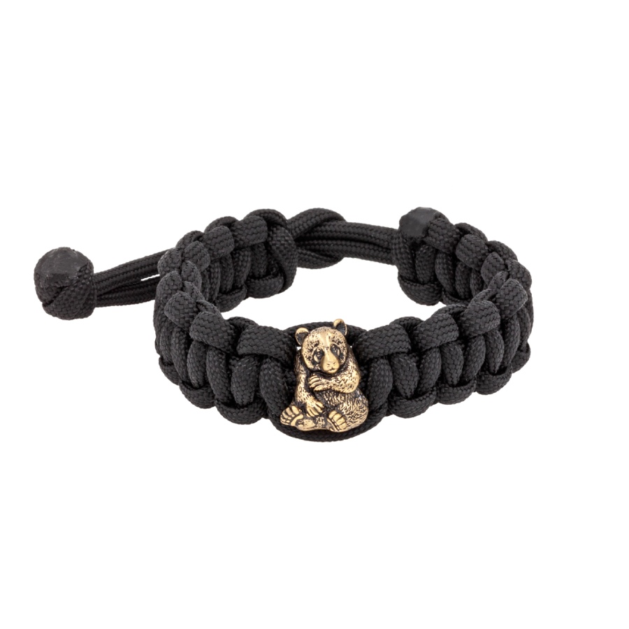 Браслет с шармом Панда из бронзы - чёрный паракорд