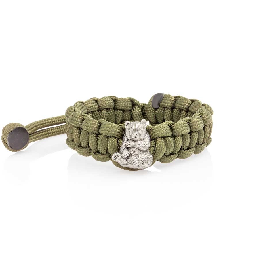 Браслет с шармом Панда из мельхиора - зеленый паракорд