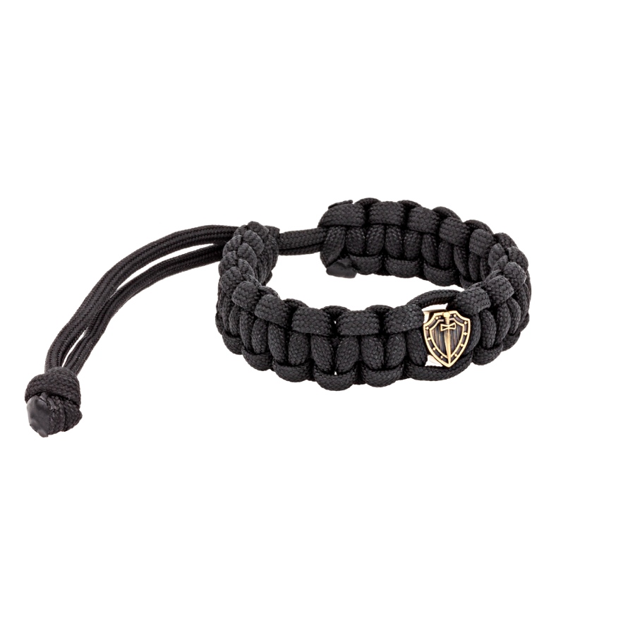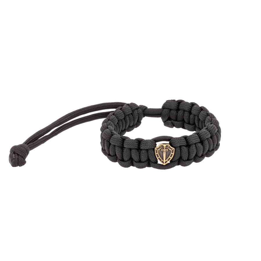 Браслет «Щит и меч» выполнен из бронзы и паракорда чёрного цвета, объединяя прочность металла и текстиля. Щит и меч символизируют силу и стойкость, что вдохновило дизайнеров на современную интерпретацию. Плетёный паракорд делает браслет удобным для ежедневной носки, а брона придаёт аксессуару утончённый блеск. Идеальный выбор для любителей активного образа жизни и стильных аксессуаров.
