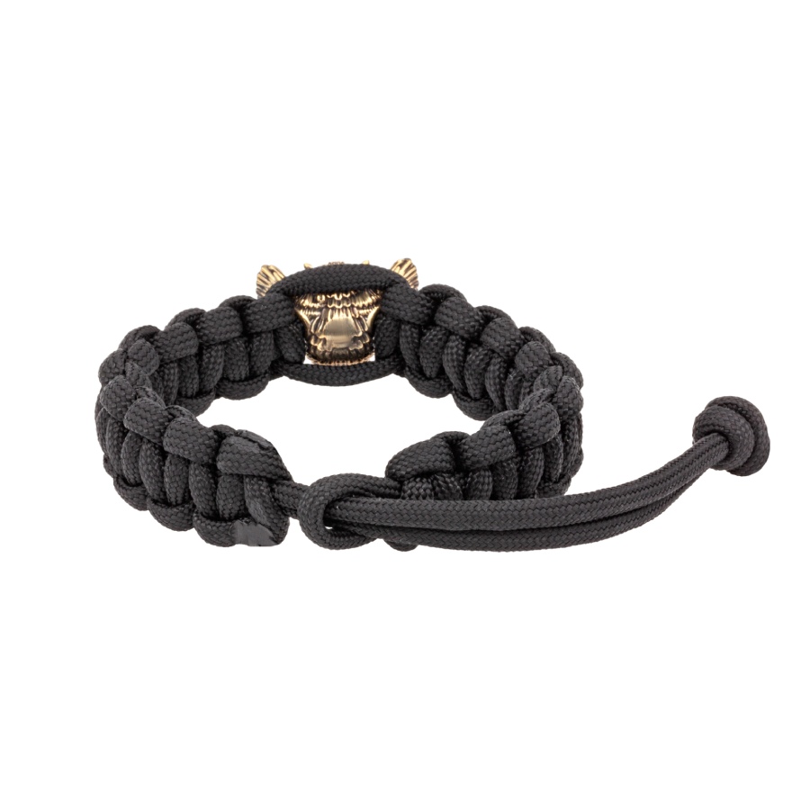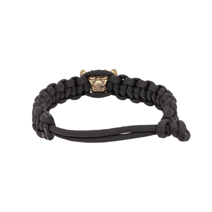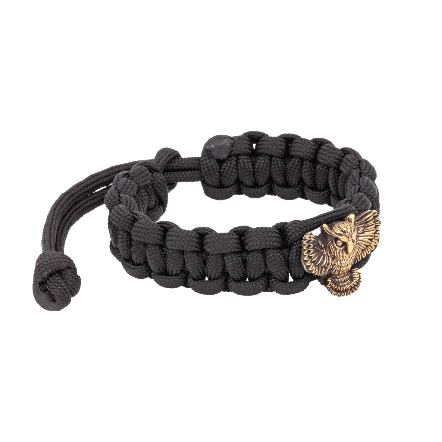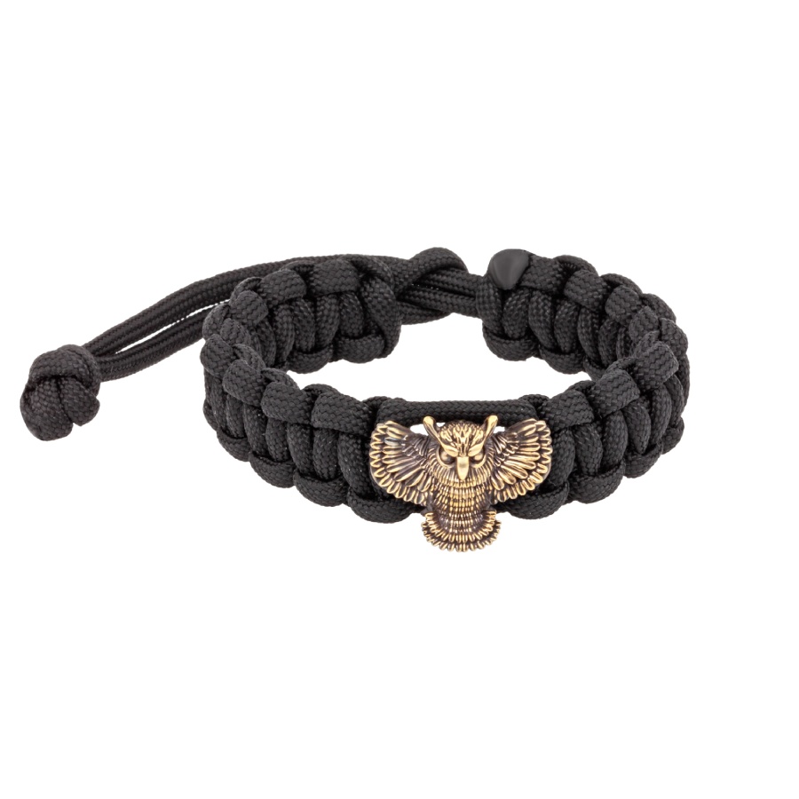 Браслет с шармом Сова из бронзы - чёрный паракорд
