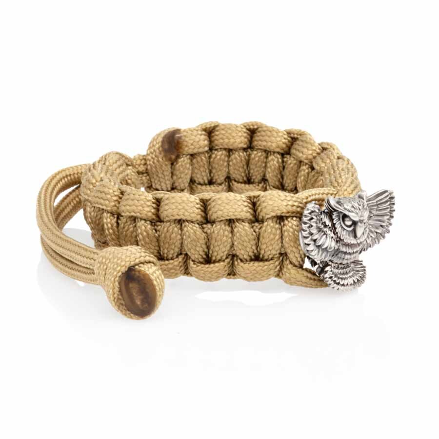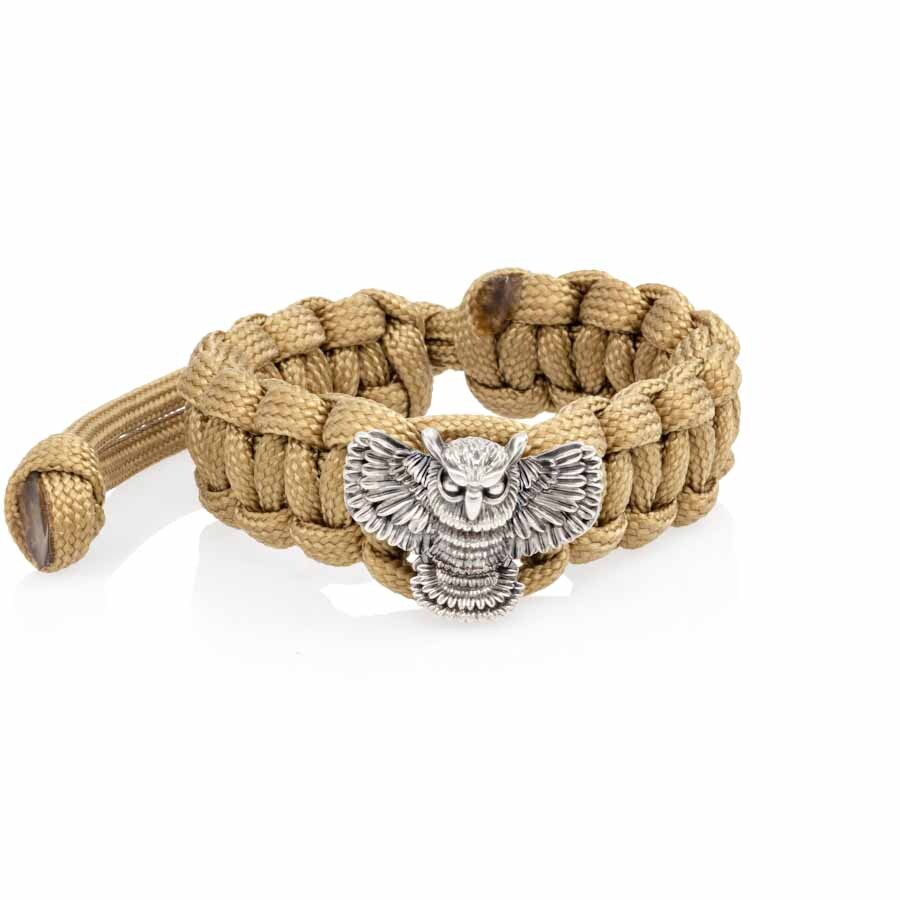 Браслет с шармом Сова из мельхиора - армейский паракорд