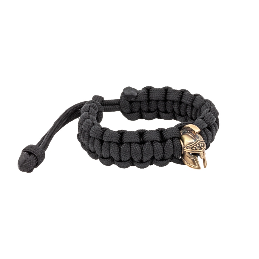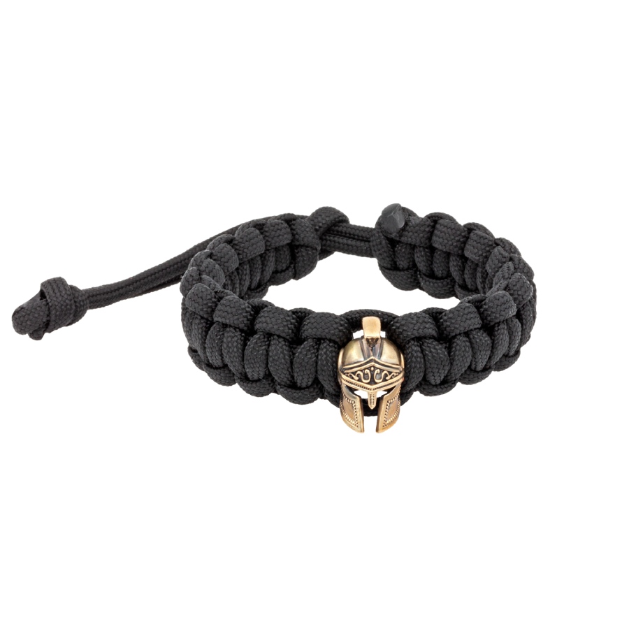 Браслет с шармом Спартанский шлем из бронзы - чёрный паракорд