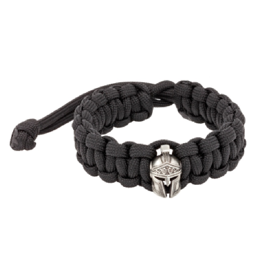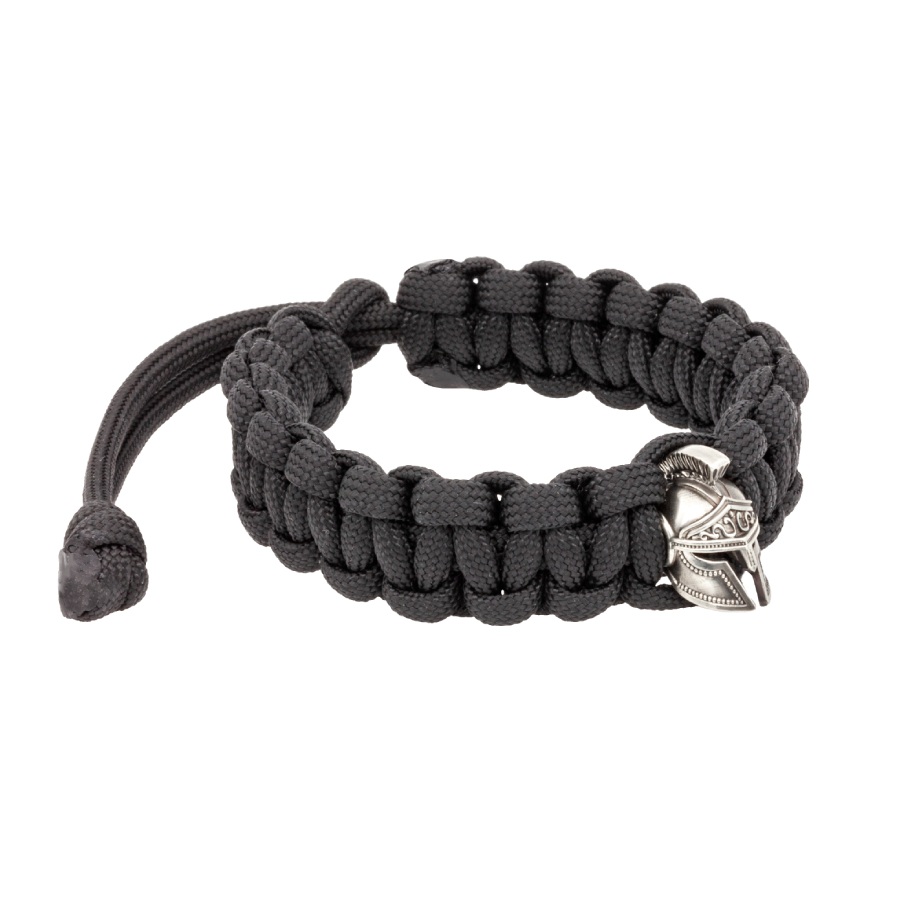 Браслет с шармом Спартанский шлем из мельхиора - чёрный паракорд