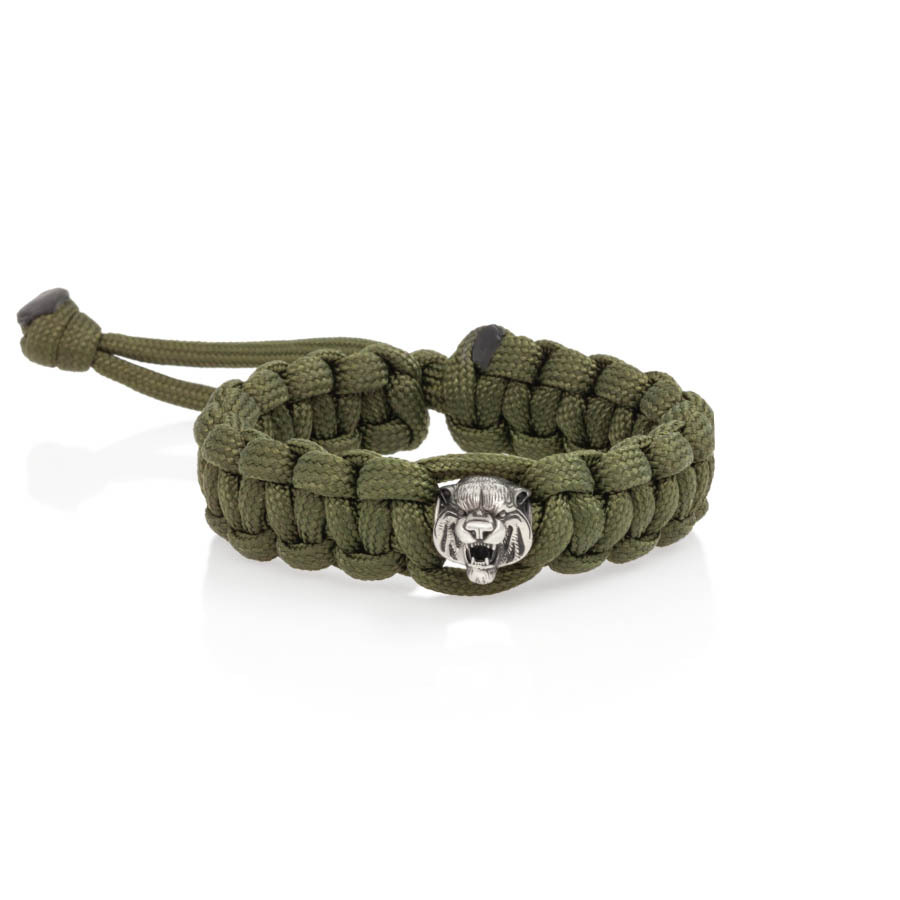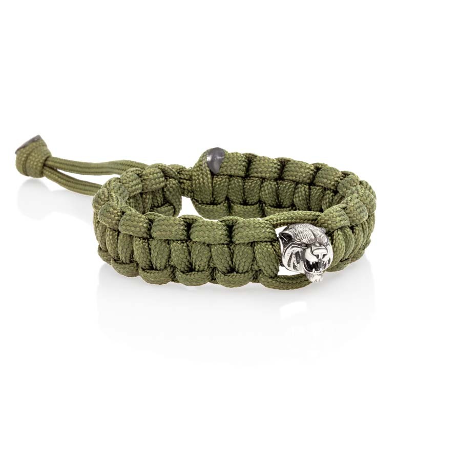 Браслет с шармом Тигр из мельхиора - зеленый паракорд
