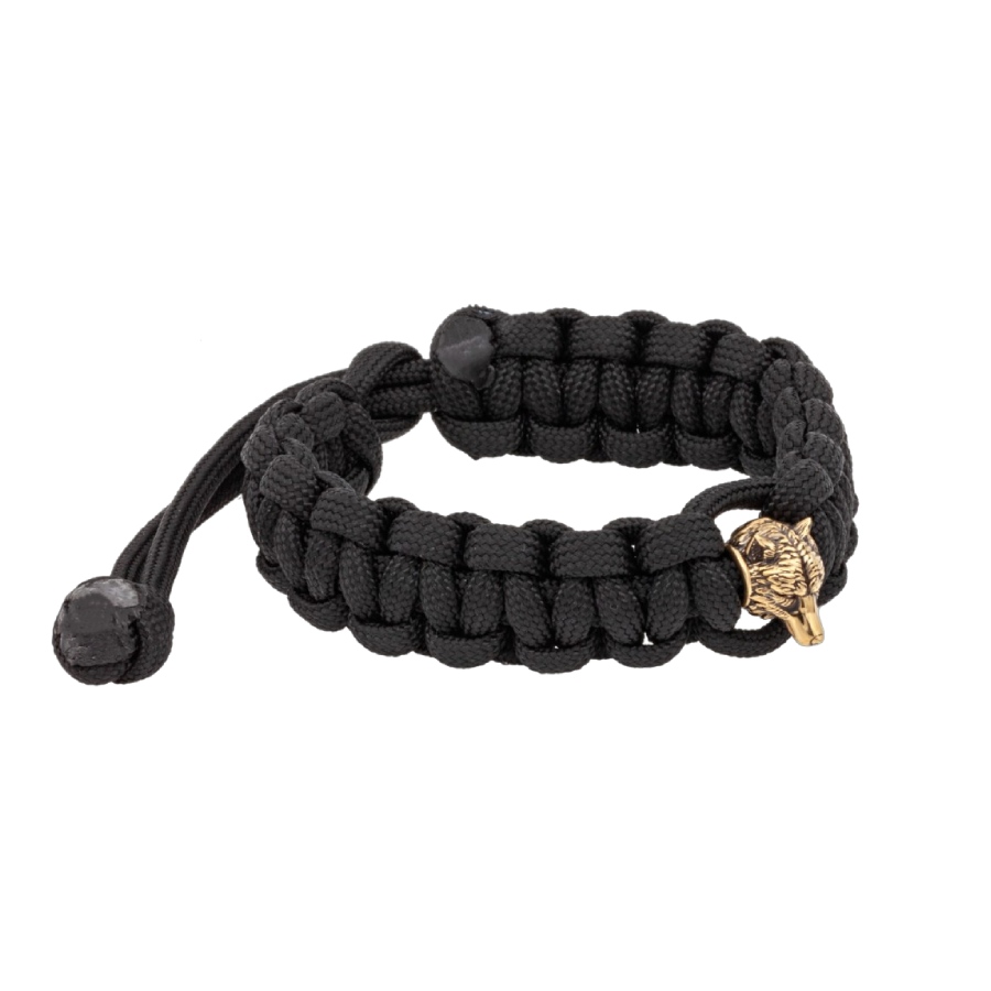 Браслет с шармом Волк из бронзы - чёрный паракорд