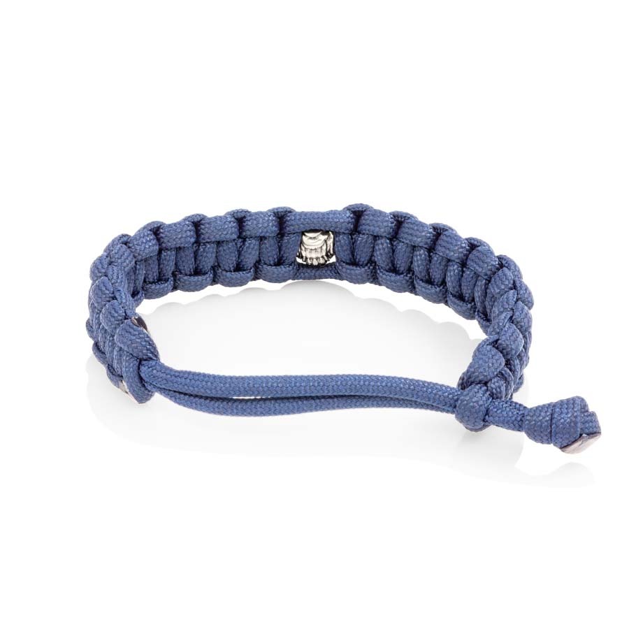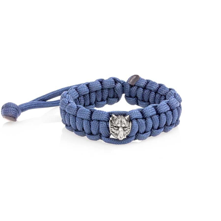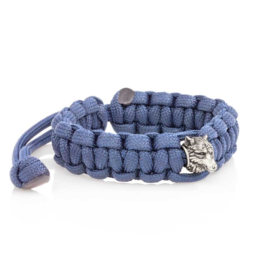 Браслет с шармом Волк из мельхиора - синий паракорд