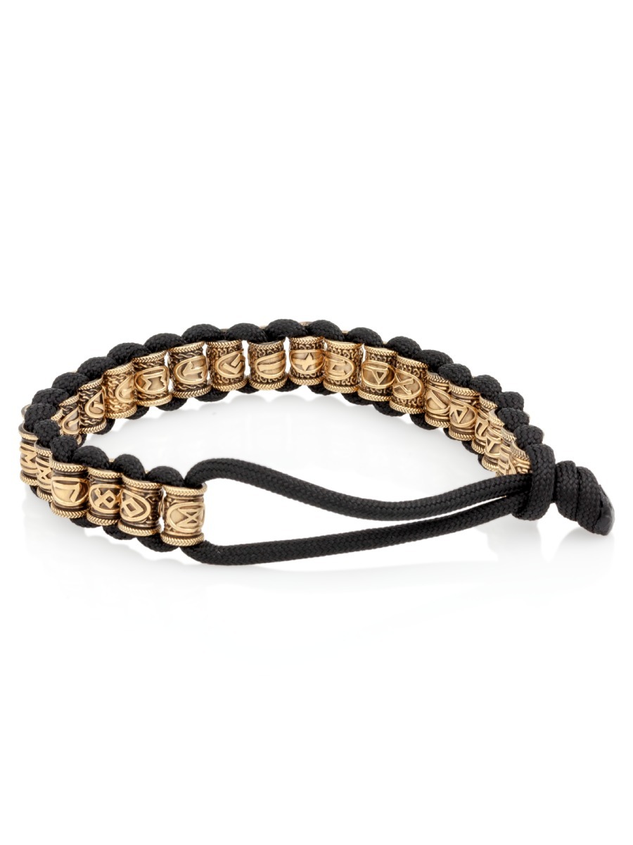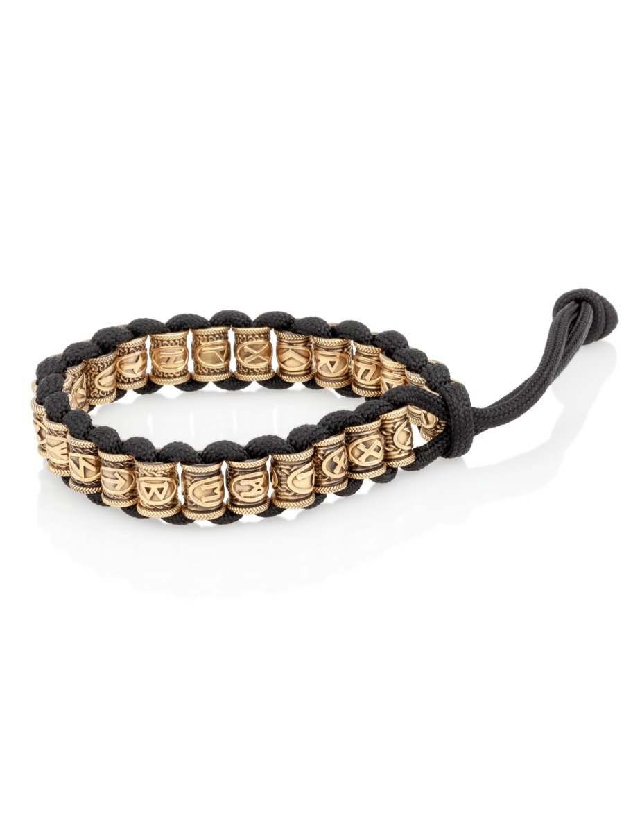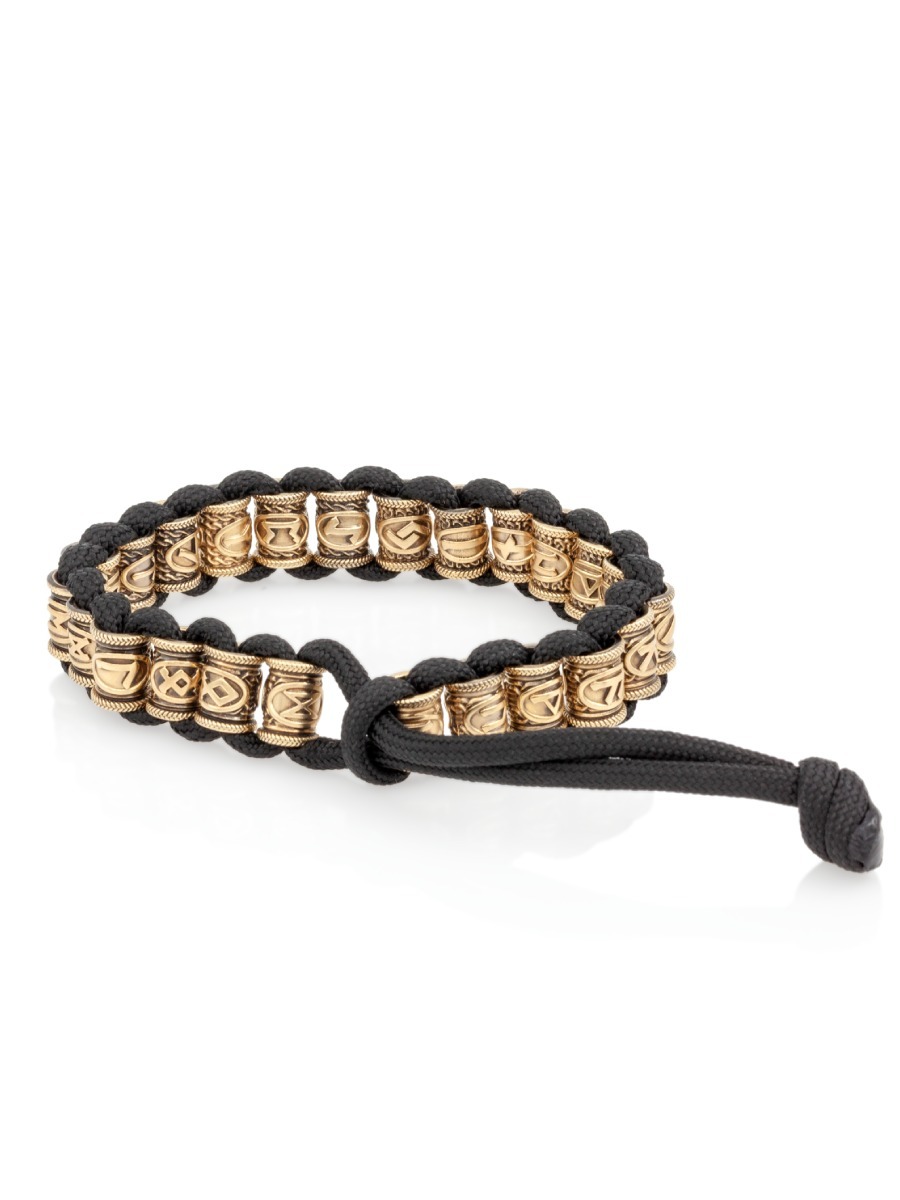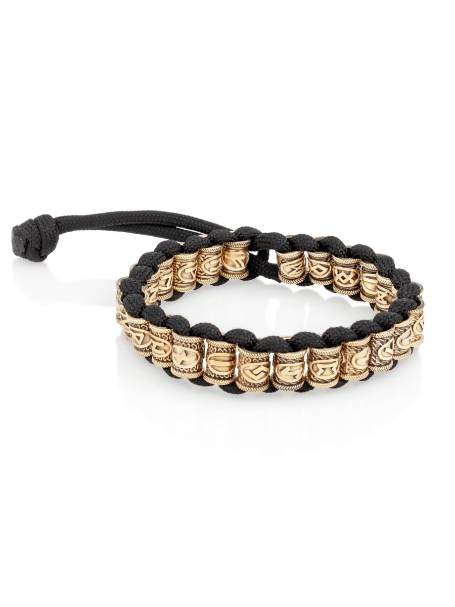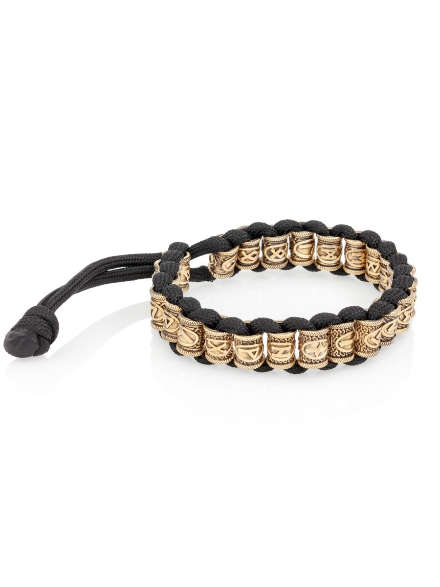 Браслет на руку представляет собой 25 шармов с изображением скандинавских рун Старшего Футарка из бронзы (Феху, Хагалаз, Тейваз, Уруз, Наутиз, Беркана, Турисаз, Эваз, Иса, Ансуз, Йера, Манназ, Райдо, Эйваз, Лагуз, Кеназ, Перт, Ингуз, Гебо, Альгиз, Дагаз, Вуньо, Соулу, Одал, а также руны Одина), которые вплетены на паракорд (толстый шнур).