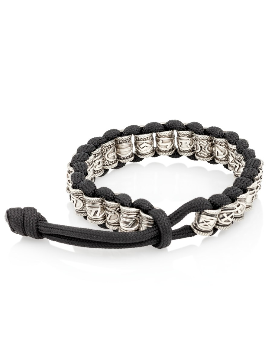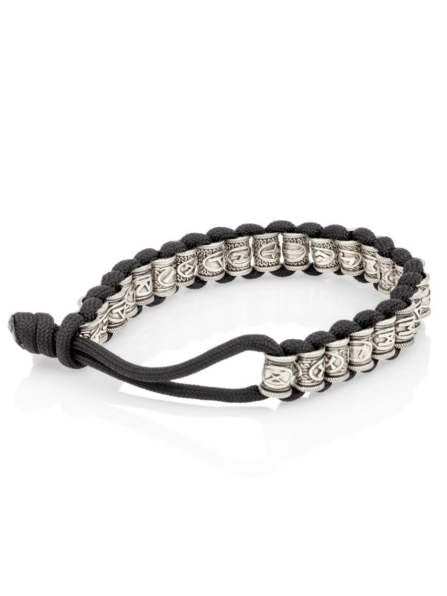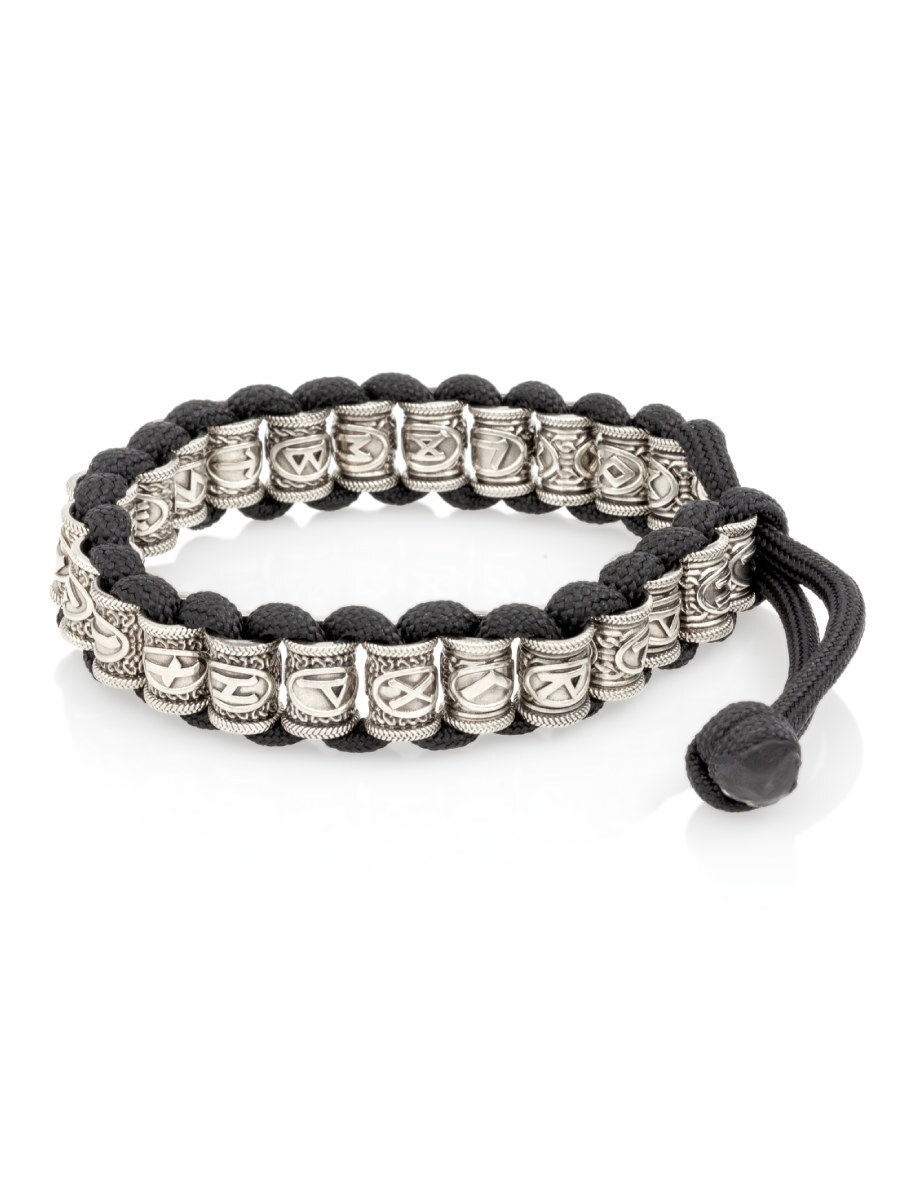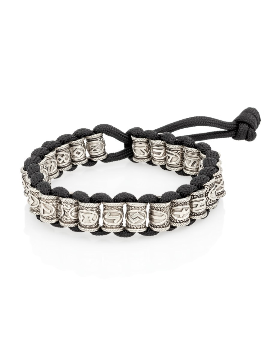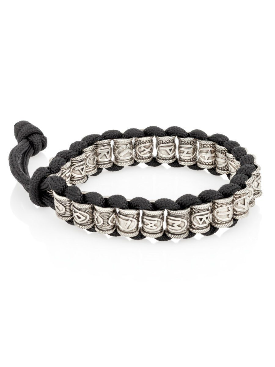 Браслет на руку представляет собой 25 шармов с изображением скандинавских рун Старшего Футарка из мельхиора (Феху, Хагалаз, Тейваз, Уруз, Наутиз, Беркана, Турисаз, Эваз, Иса, Ансуз, Йера, Манназ, Райдо, Эйваз, Лагуз, Кеназ, Перт, Ингуз, Гебо, Альгиз, Дагаз, Вуньо, Соулу, Одал, а также руны Одина), которые вплетены на паракорд (толстый шнур).