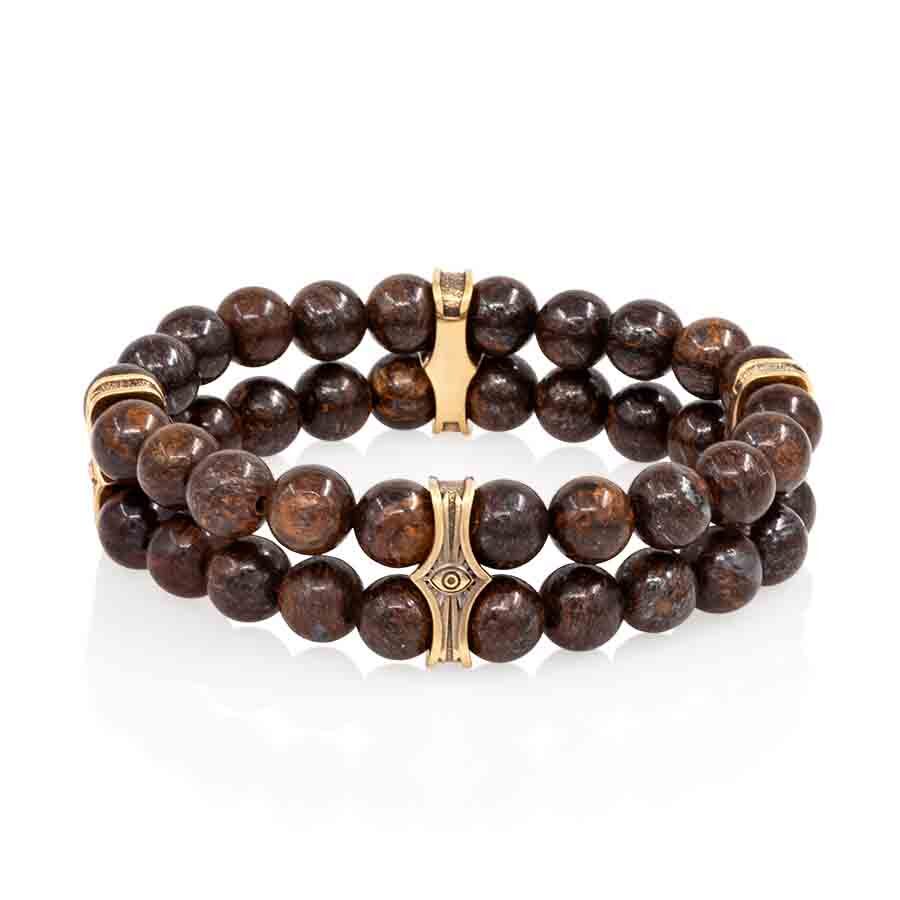 Элегантный двойной браслет с шармом Всевидящее око выполнен из бронзы и дополнен бусинами бронзита.