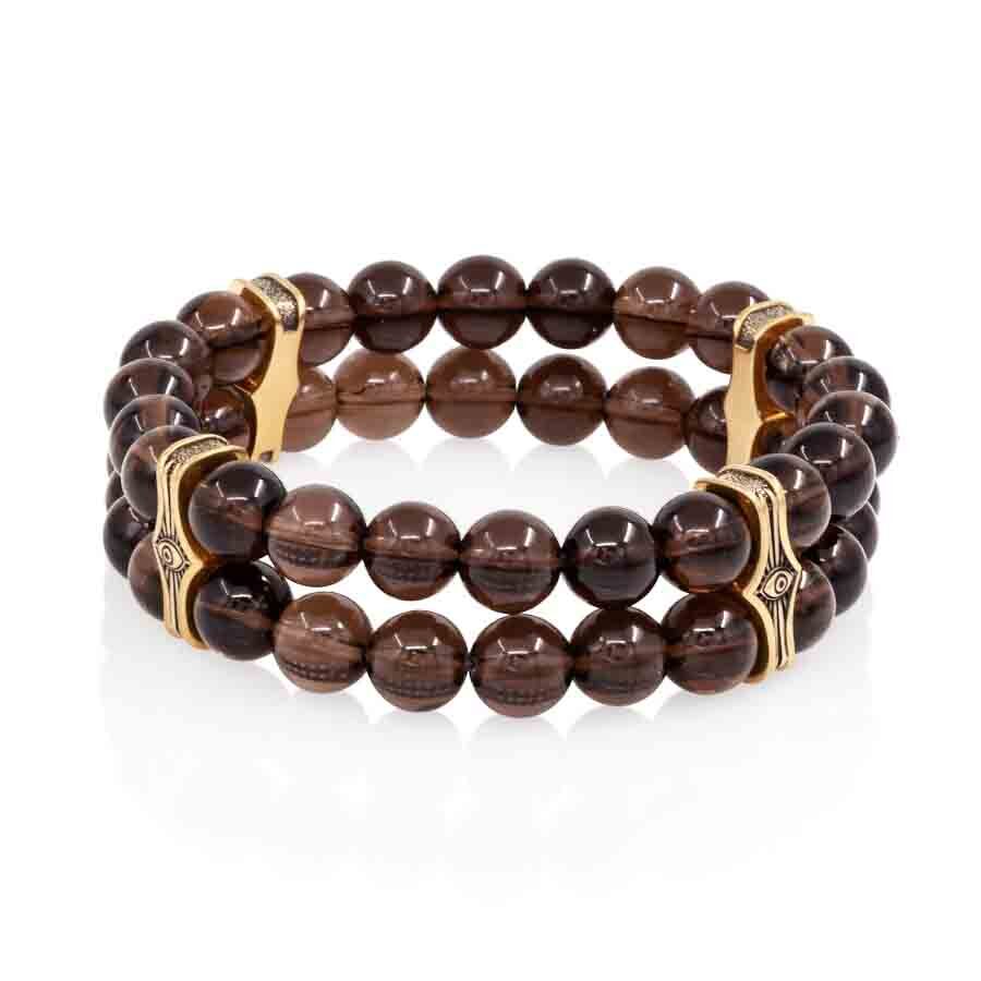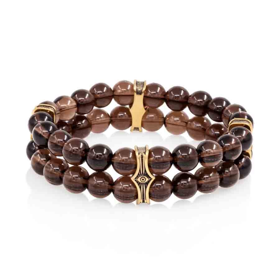 Этот стильный двойной браслет с шармом Всевидящее око изготовлен из бронзы и дополнен бусинами раухтопаза.