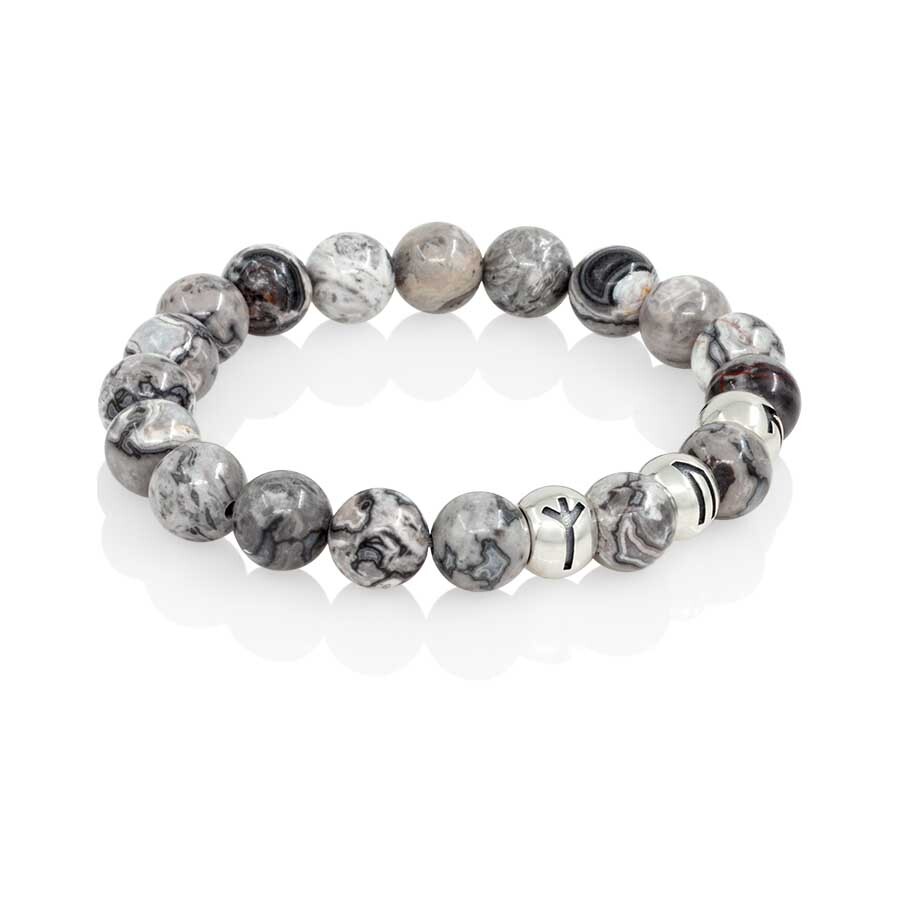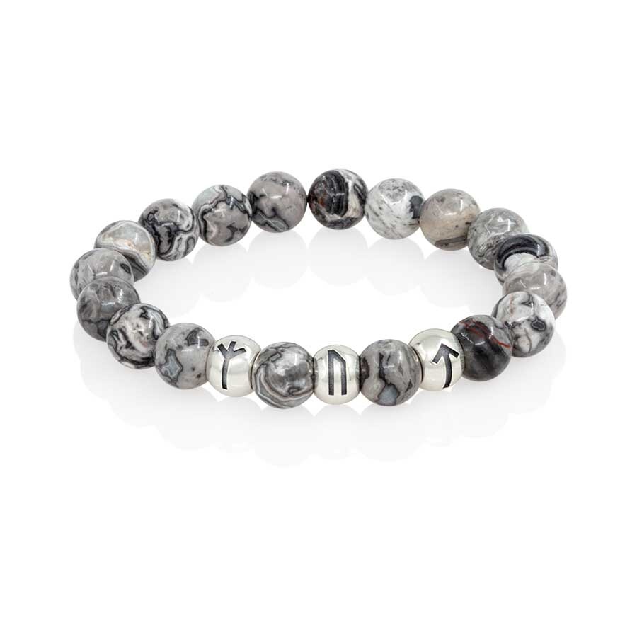 Браслет «Защита и Сила» с рунами Альгиз, Уруз и Тейваз из серой яшмы — надежный амулет для внутренней гармонии и уверенности. Серая яшма помогает сосредоточиться и защищает от негативных влияний, а руны усиливают силу духа и защитные свойства.